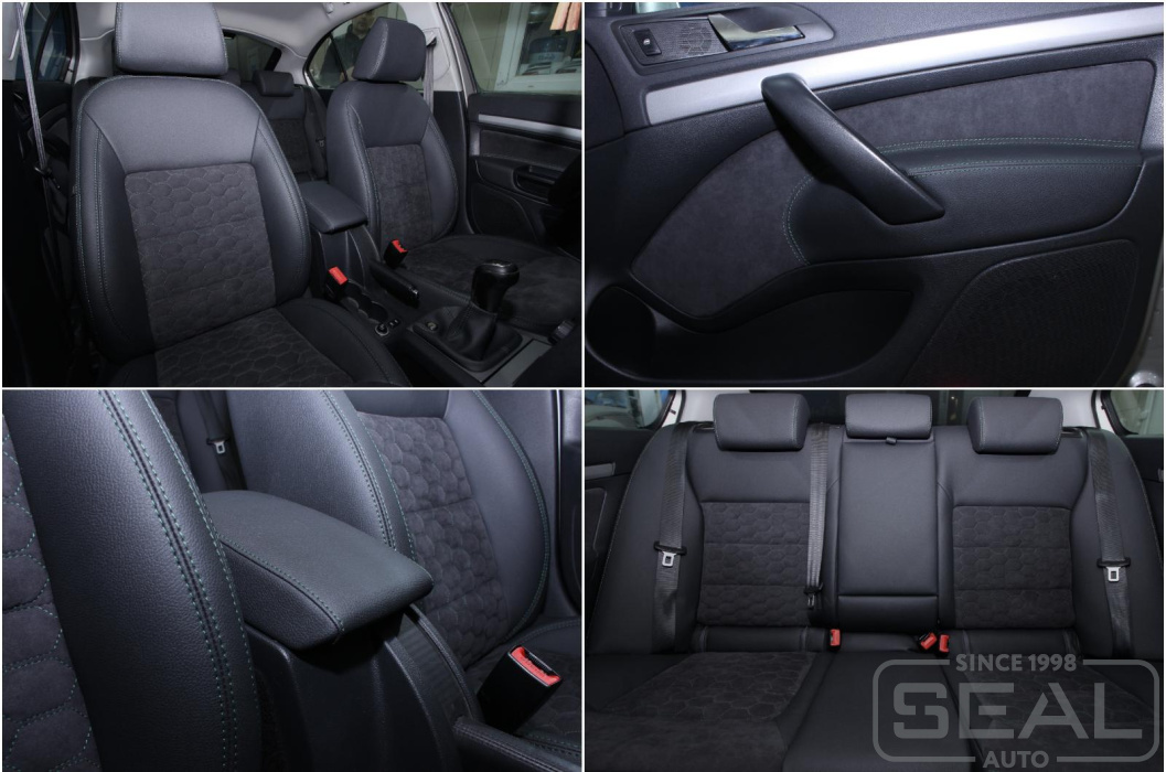 А вот это уже Мерседес в 213 кузове на котором мы вполняли работы по частичному перешиву сидений, меняли заводскую ткань на оригинальную алькантару с прострочкой ромбами. В дополнении к этому мы пошили оригинальные коврики из экокожи.