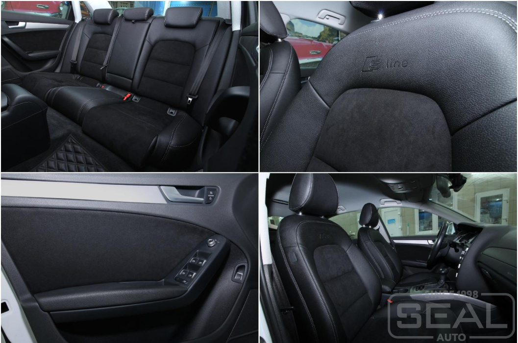 Проект по перетяжке салона Ауди А4 (кузов В8). Получился строгий салон с вставками из оригинальной алькантары и тиснения на передних сидениях придали еще немного индивидуальности!