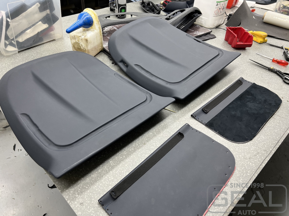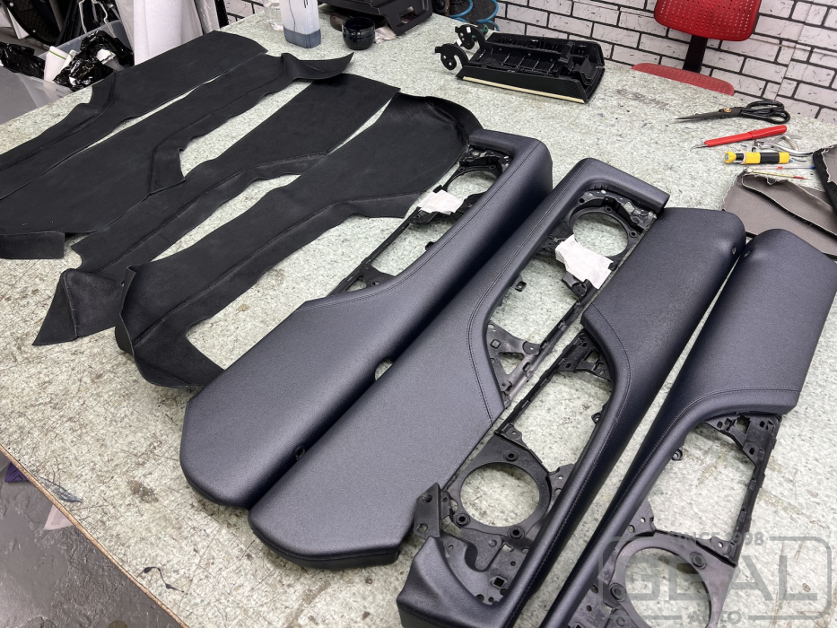 В боксе клеевых работ мастера производят множество различных работ связанных с перетяжкой пластиковых элементов интерьера салона.