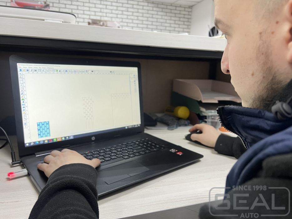 Рабочий день начинается с написания программы для последующей оригинальной стежки для салона автомобиля Киа Соренто.