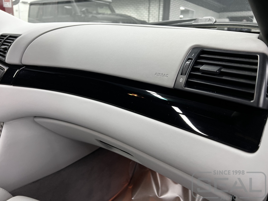 В момент перетяжки торпедо мы выполнили окрас молдингов салона в цвете под "рояльный лак".