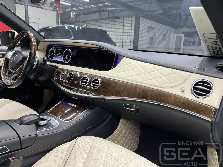 Приборная панель автомобиля Мерседес S-klasse. Роскошь салона чувствуется в каждой детали и элементе интерьера.
