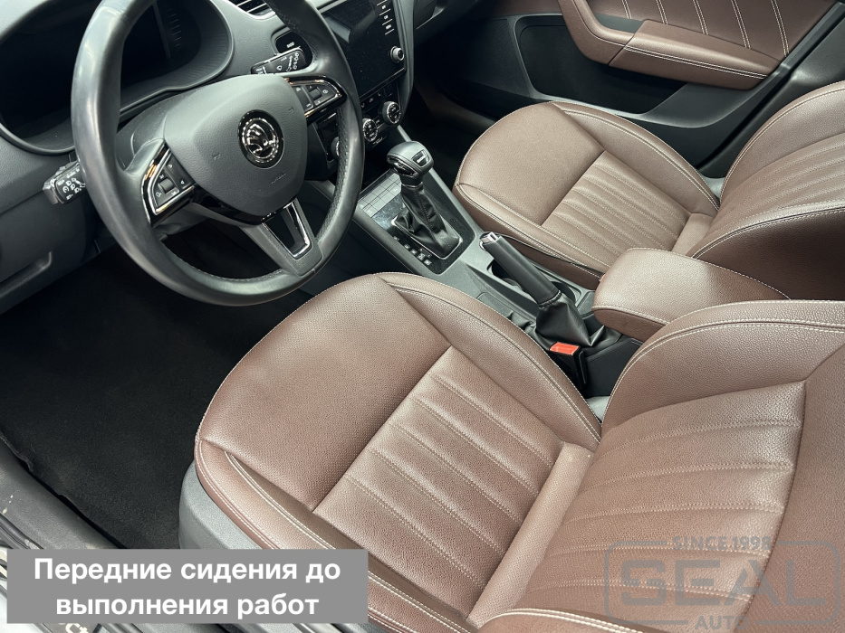 Это Шкода Октавия. Год назад мы перешивали салон авто, теперь клиент решил добавить комфорта для долгих поездок.