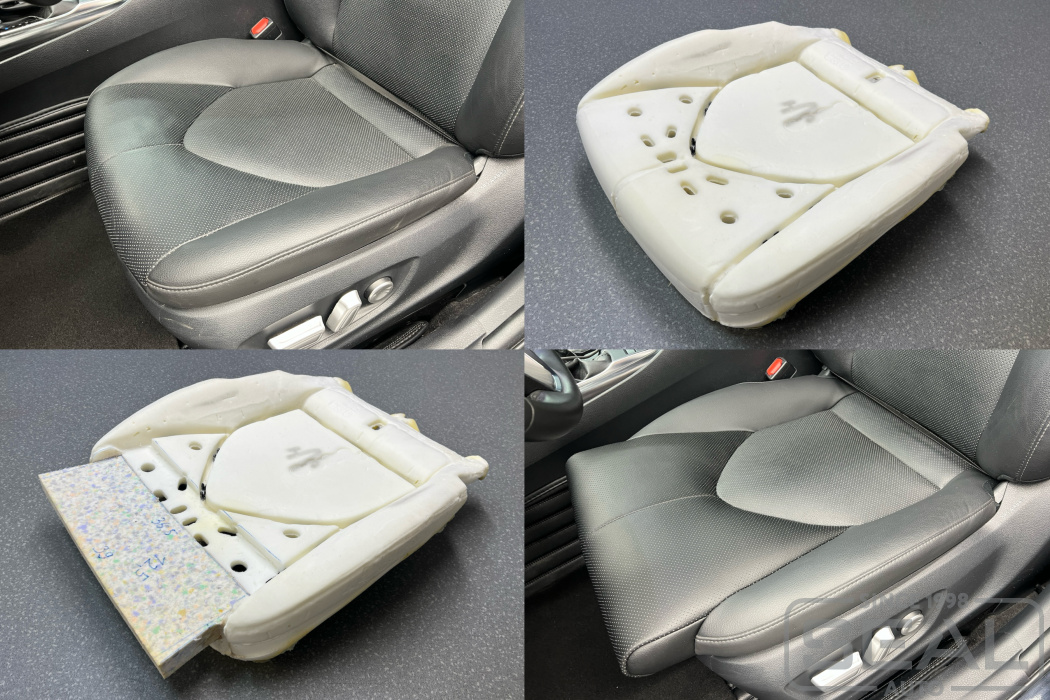 В этой работе владелец Тойота Камри решил максимально увеличить низ переднего сидения несмотря на эстетический вид.