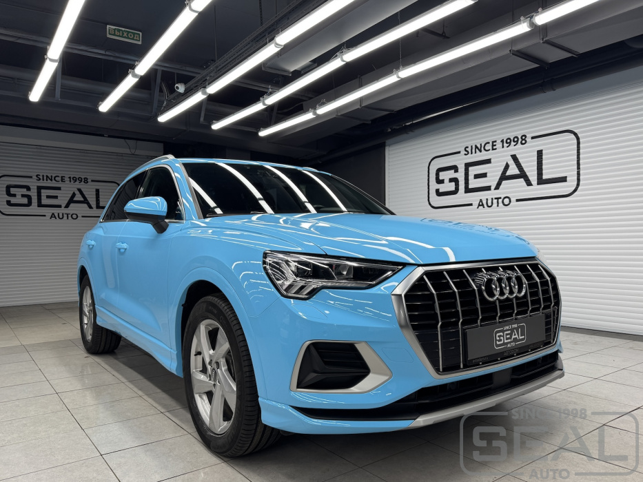 Изначальный цвет автомобиля был белый, но владелец этой Ауди Q3 решил добавить яркости в экстерьер авто.