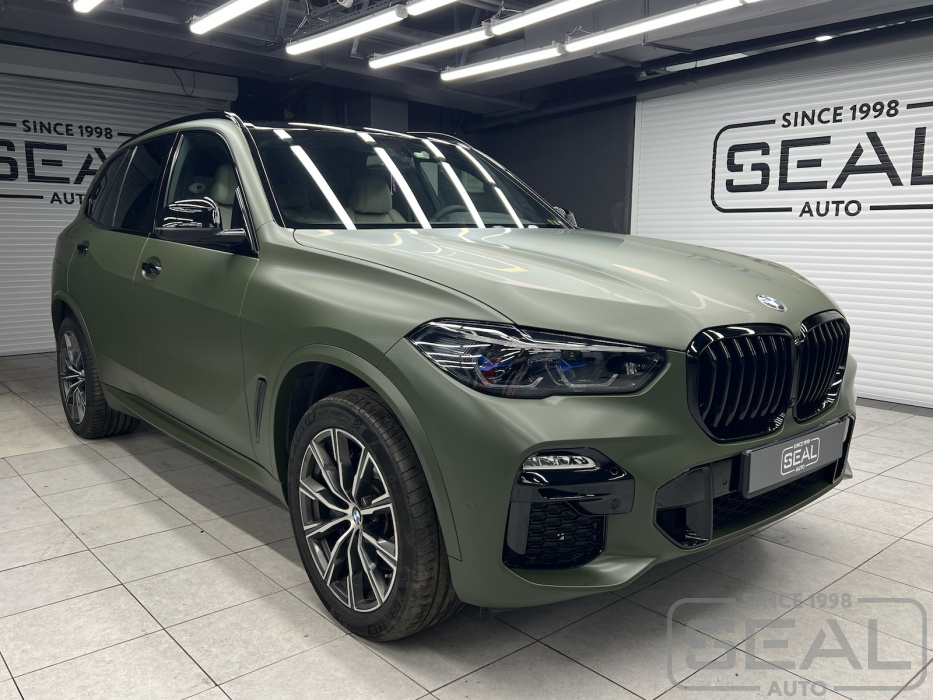 Оригинальный синий цвет экстерьера данного БМВ Х5 не понравился новому владельцу и было решено оклеить кузов цветной пленкой.