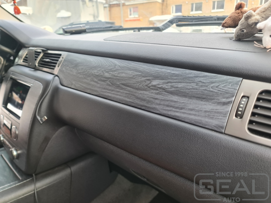 Аквапринт деталей интерьера салона Шевроле Тахо.