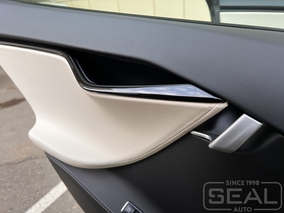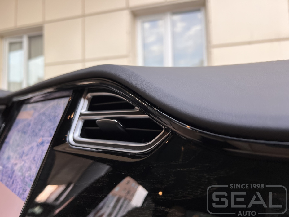 Услуга по аквапринту салонных молдингов на автомобиле Тесла Model S.