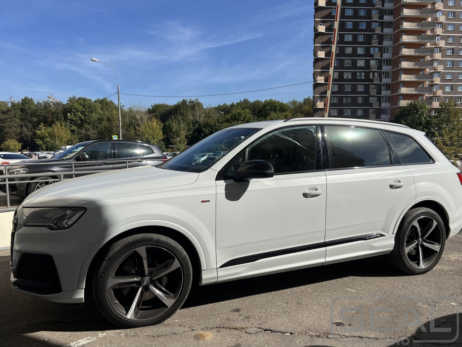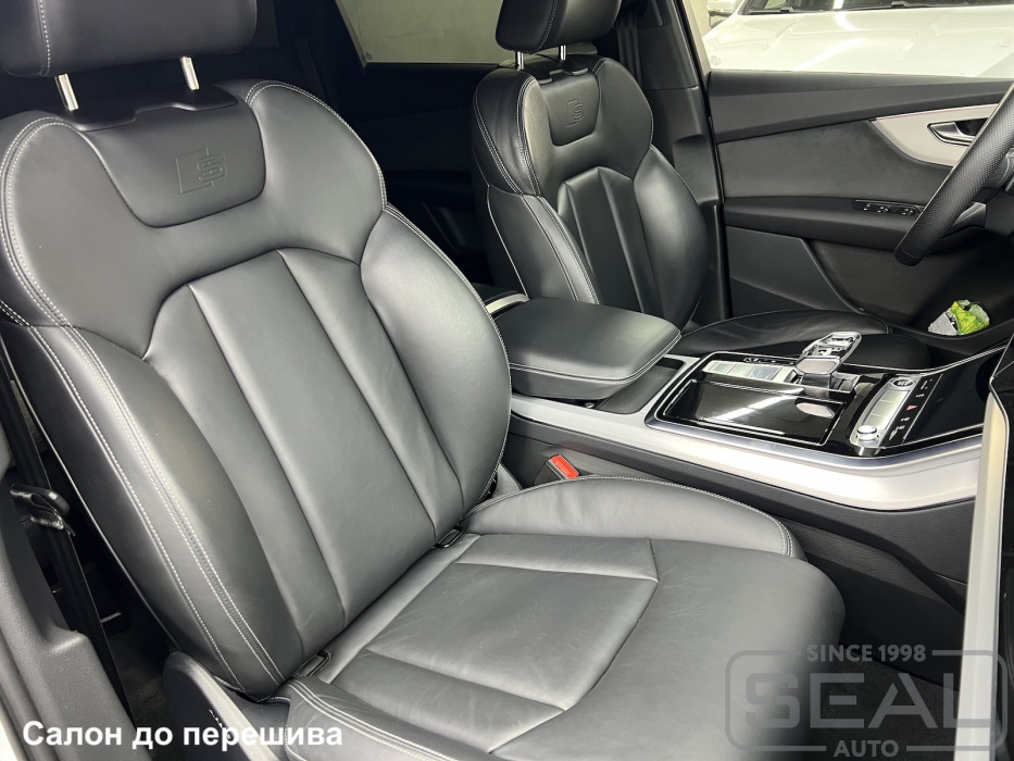 Работа по замене центральных частей сидений автомобиля Ауди Q7.