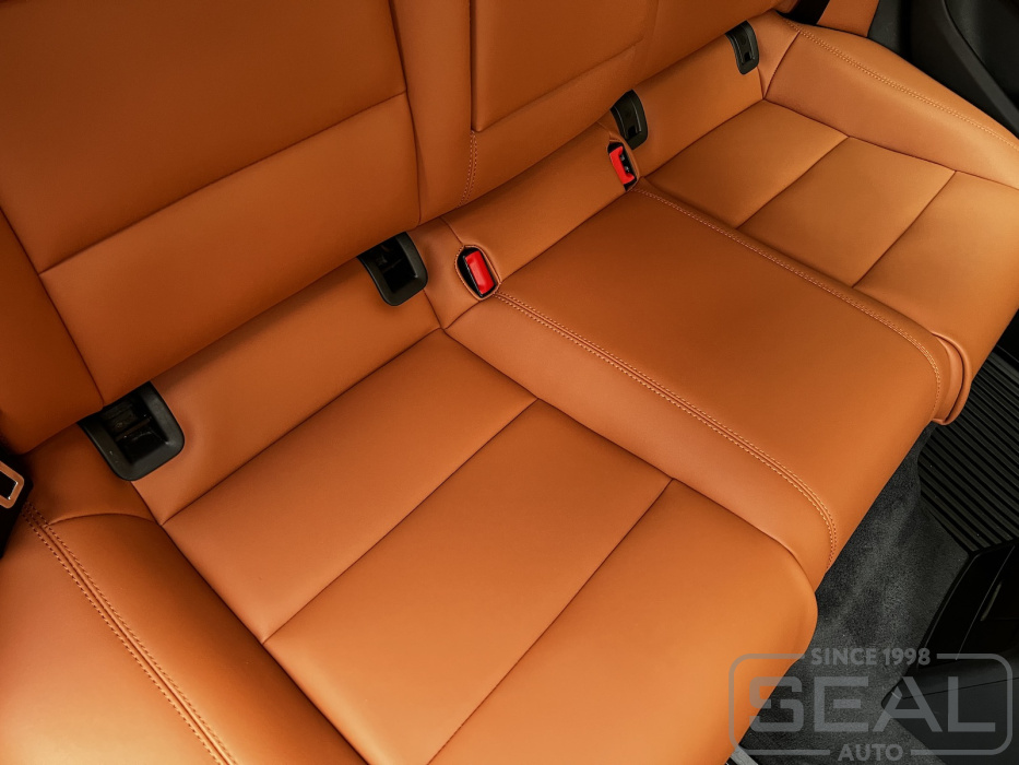 Перетяжка кожей сидений, подголовников, перетяжка переднего подлокотника - 87.000 рублей.