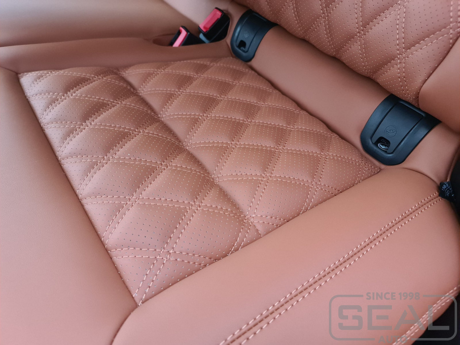Перетяжка сидений, подголовников и переднего подлокотника - 87.000 рублей.