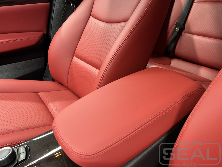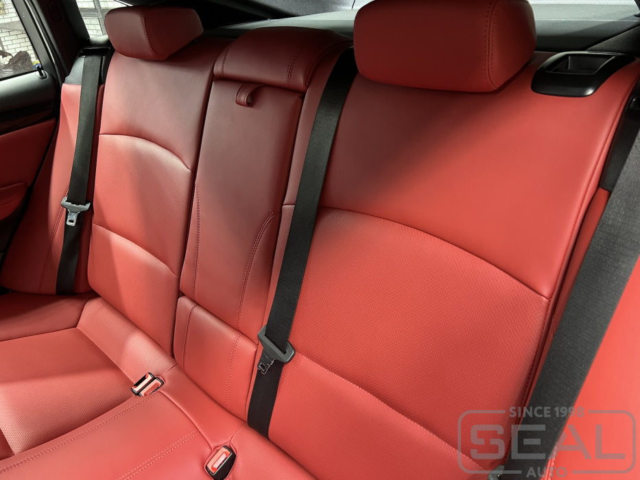 Перетяжка сидений, всех подголовников и переднего подлокотника - 89.000 рублей.