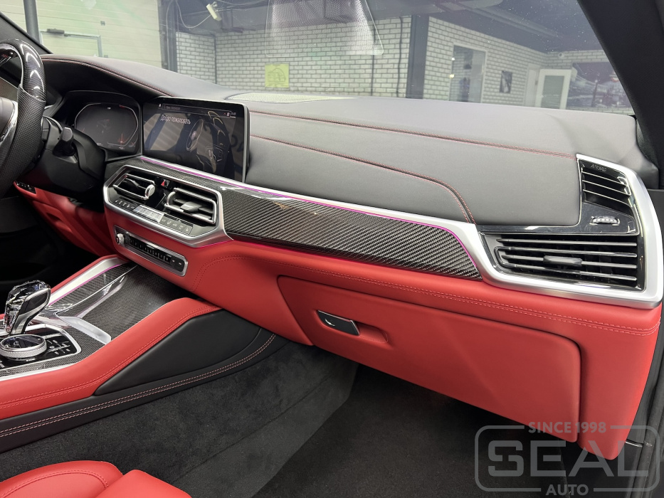 Услуга по перетяжке торпедо, центральной консоли и элементов дверей для БМВ Х6 (G06).