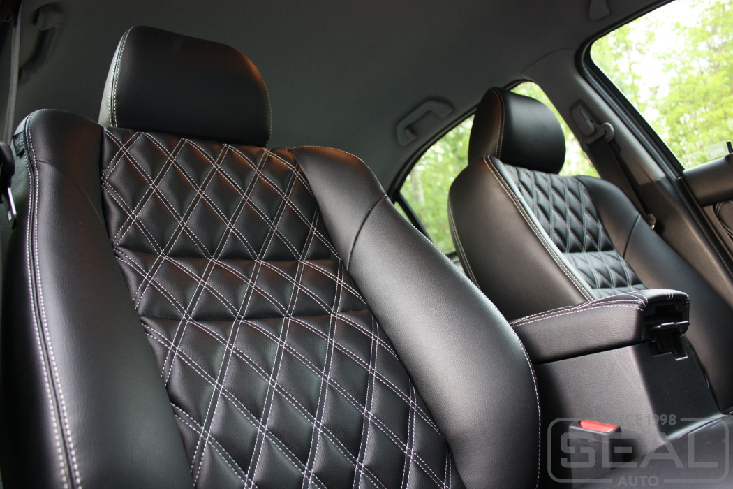 Перетяжка кожей сидений, подголовников, переднего подлокотника - 82.000 рублей.