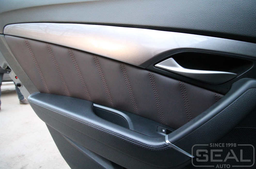 Перетяжка дверных карт со стежкой (4 панели) - 30.000 рублей.