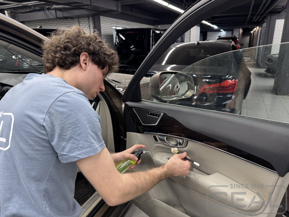 Реставрация кожи в интерьере салона Вольво ХС90