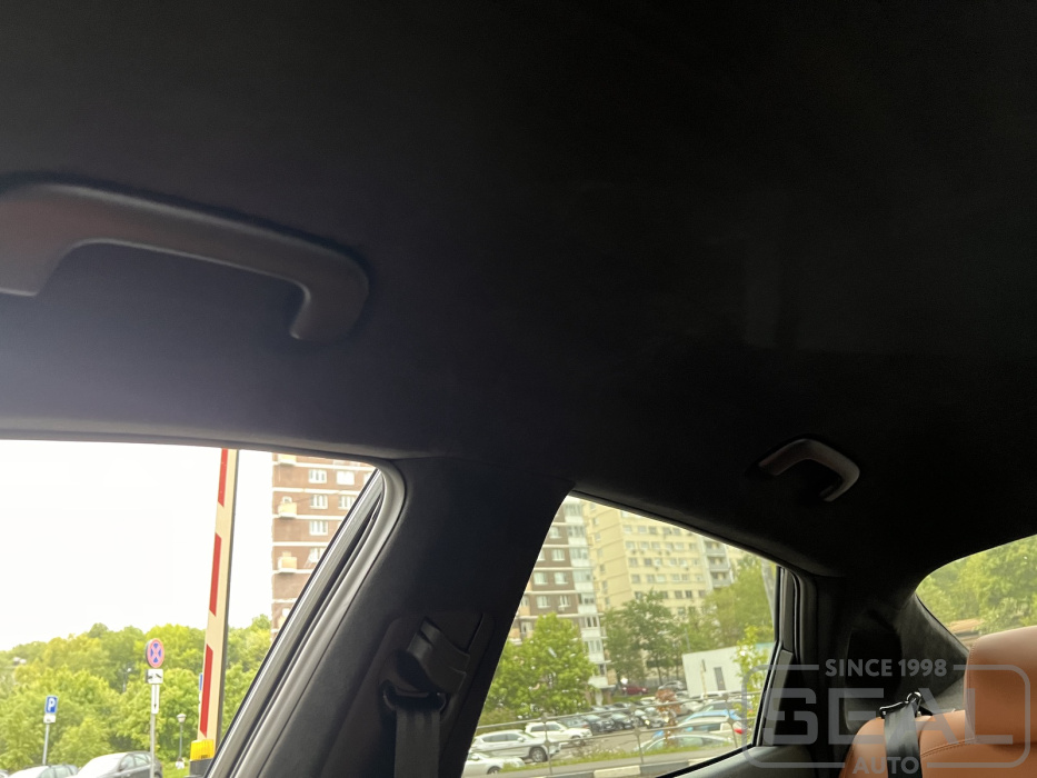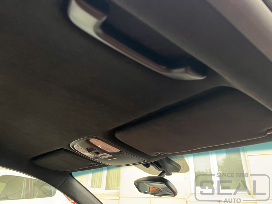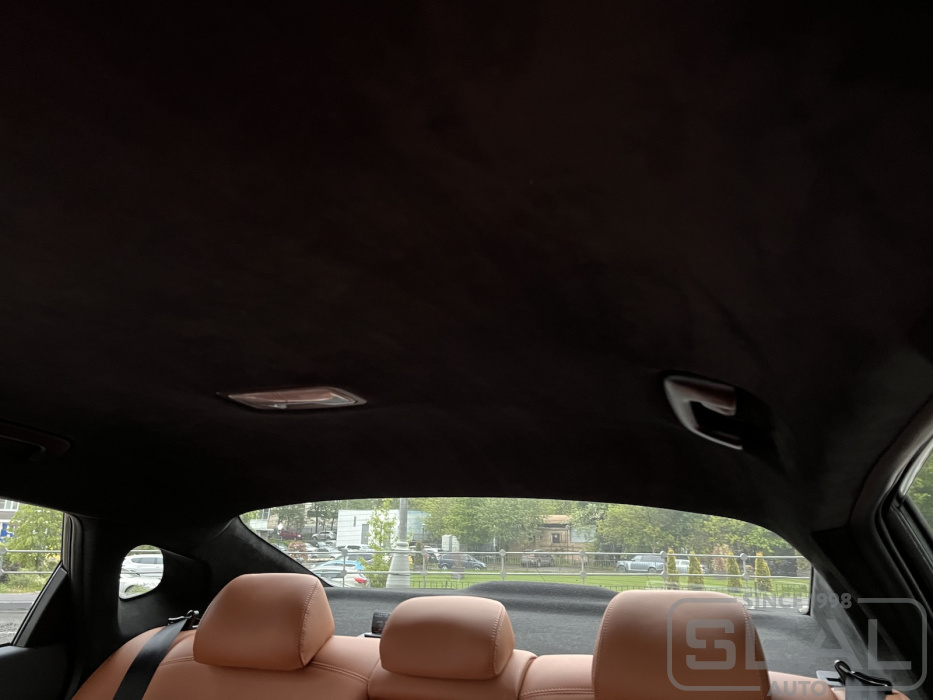 Перетяжка потолка, всех стоек и двух солнцезащитных козырьков (включая материал) - 93.000 рублей.