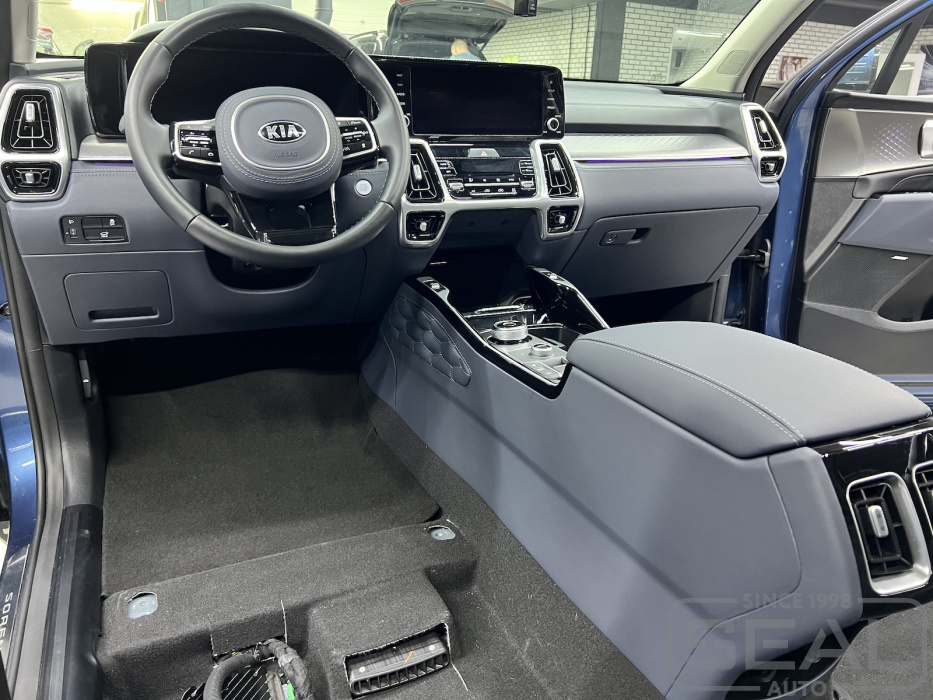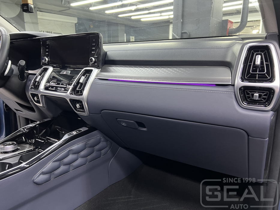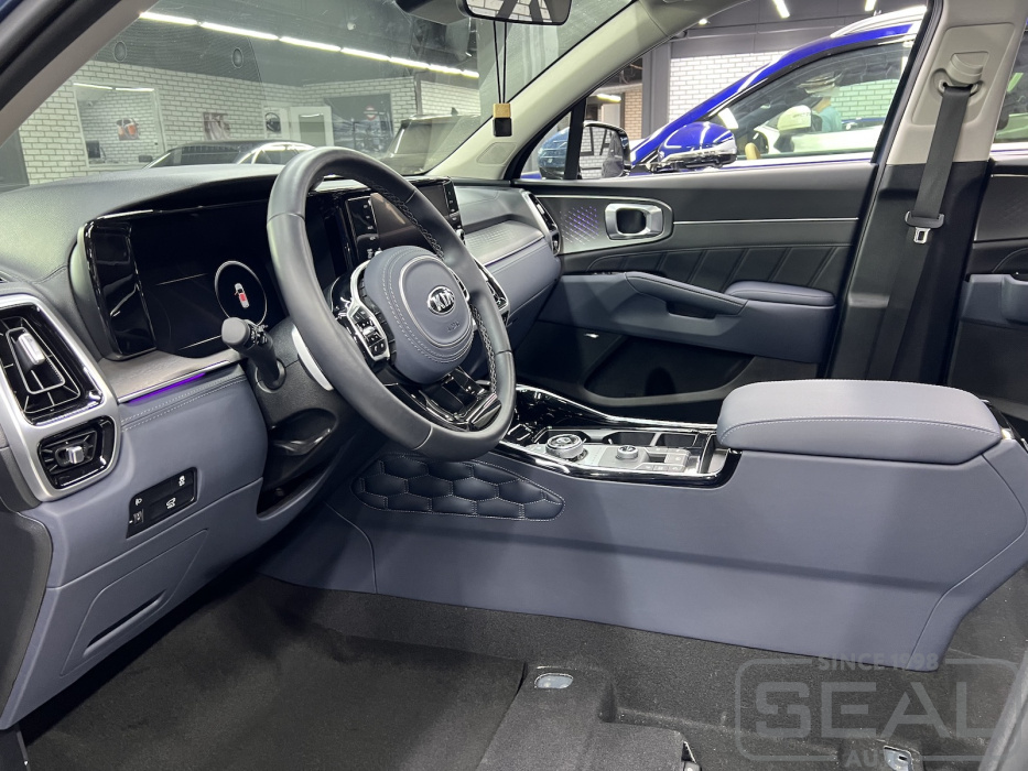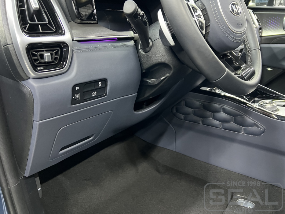 Услуга по перетяжке торпедо, центральной консоли и дверных панелей для КИА Соренто (4-е поколение).