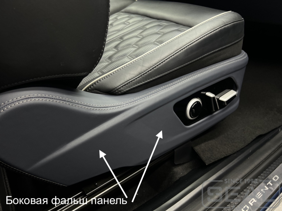 Перетяжка боковых фальш панелей на передних сидениях (эко кожа) - 24.000 рублей.