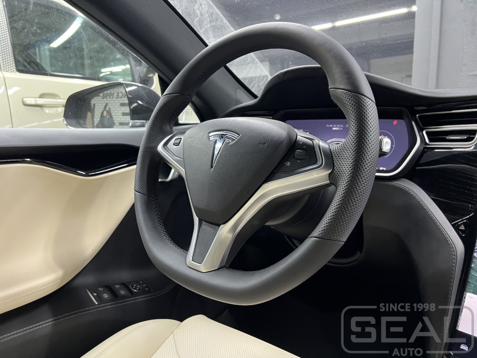 Услуга по перетяжке руля автомобиля Тесла Моdel S.