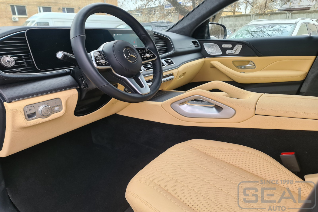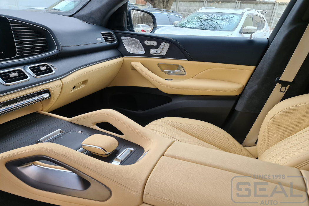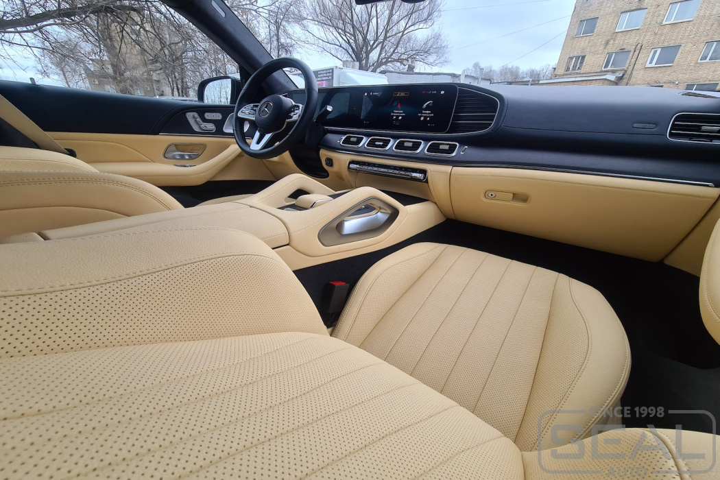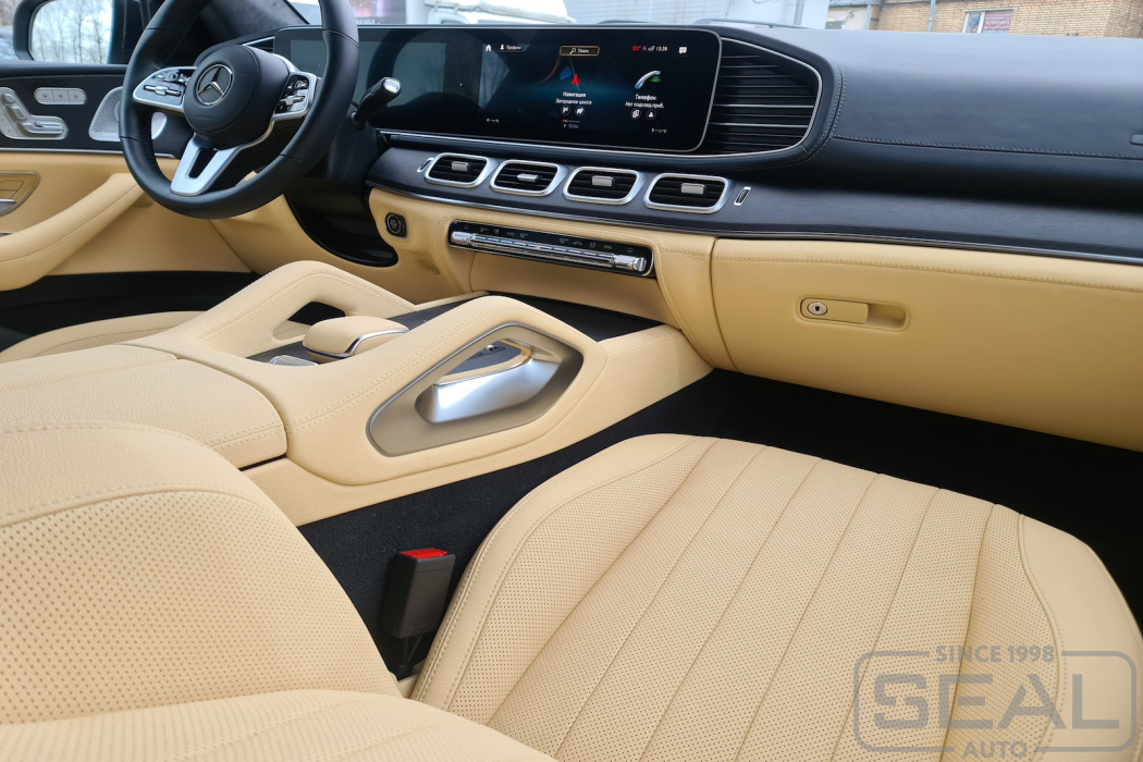 Работа по перетяжке торпедо и центральной консоли на автомобиле Мерседес GLE Coupe.