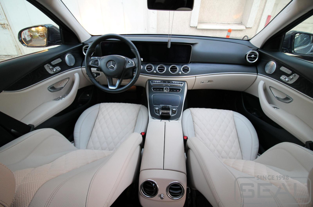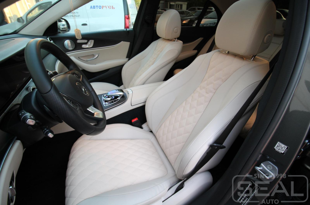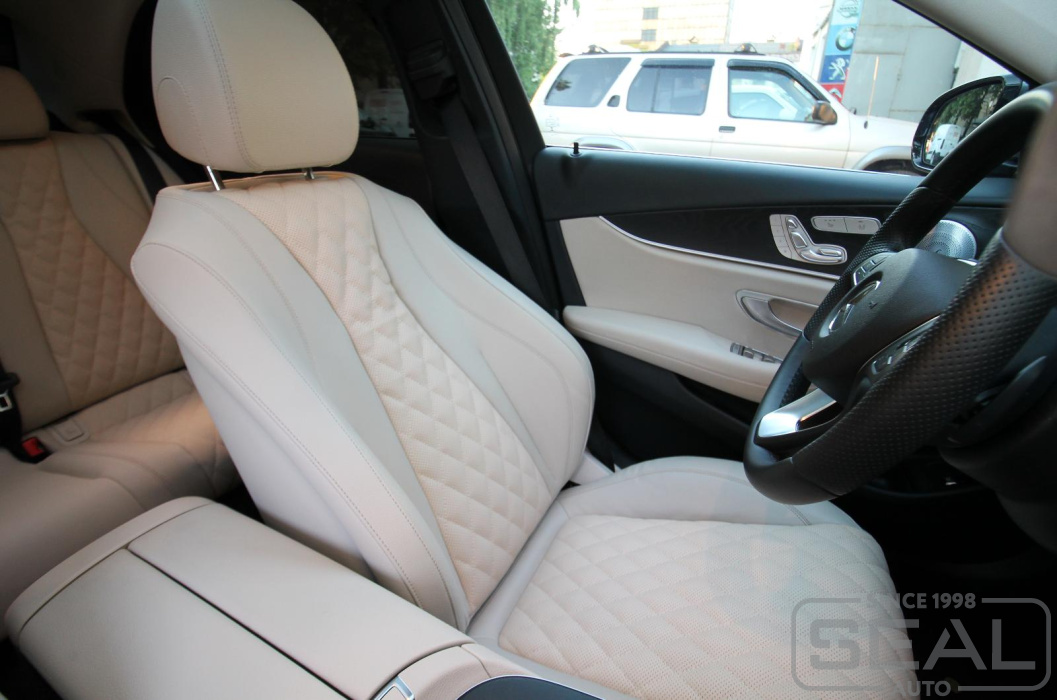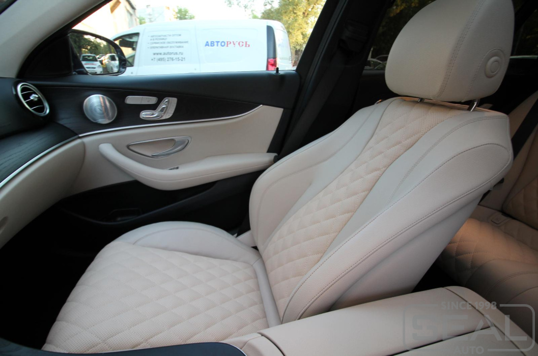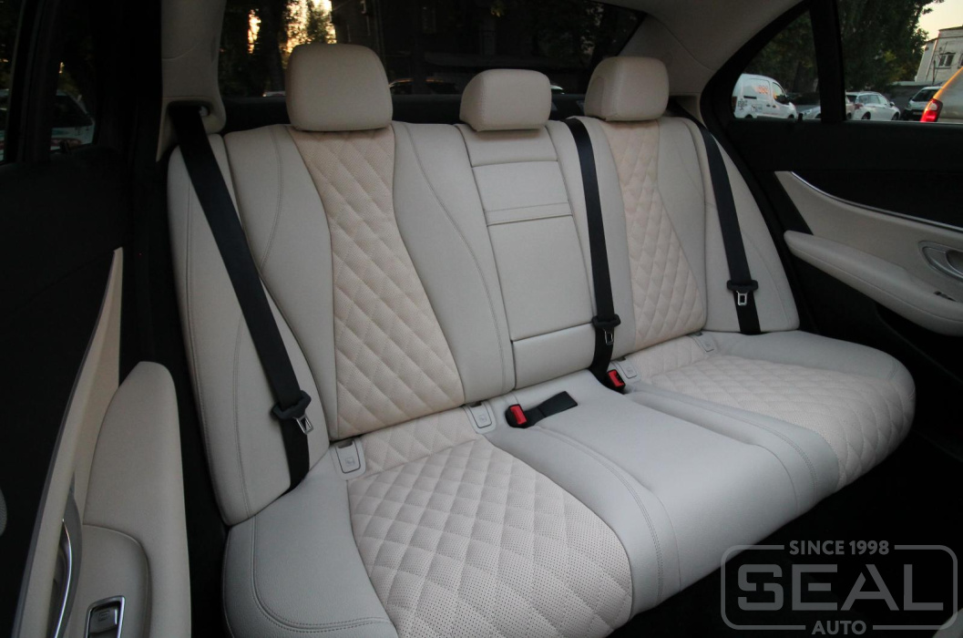 Работа по перетяжке центральных частей сидений автомобиля Мерседес Е-класс 213 кузов