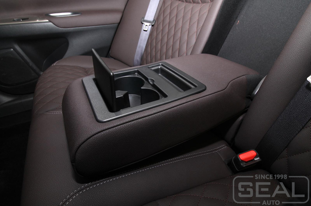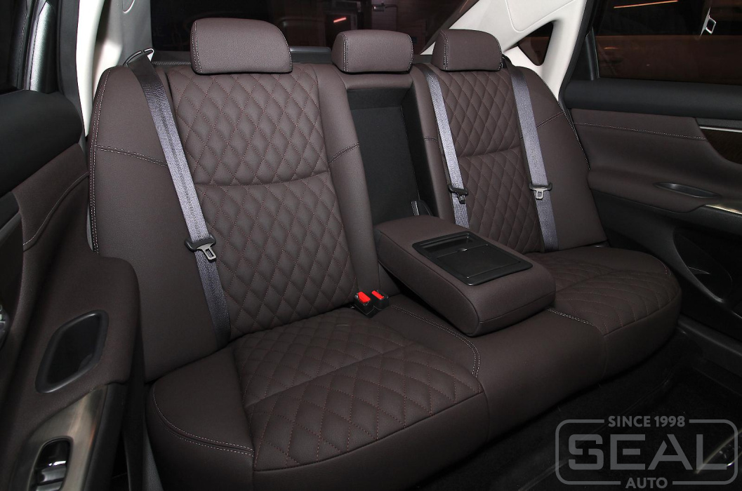 Обтяжка кожей сидений, заднего подлокотника и всех подголовников - 85.000 рублей.