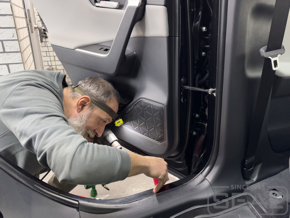 - Оклейка внутренних частей порогов