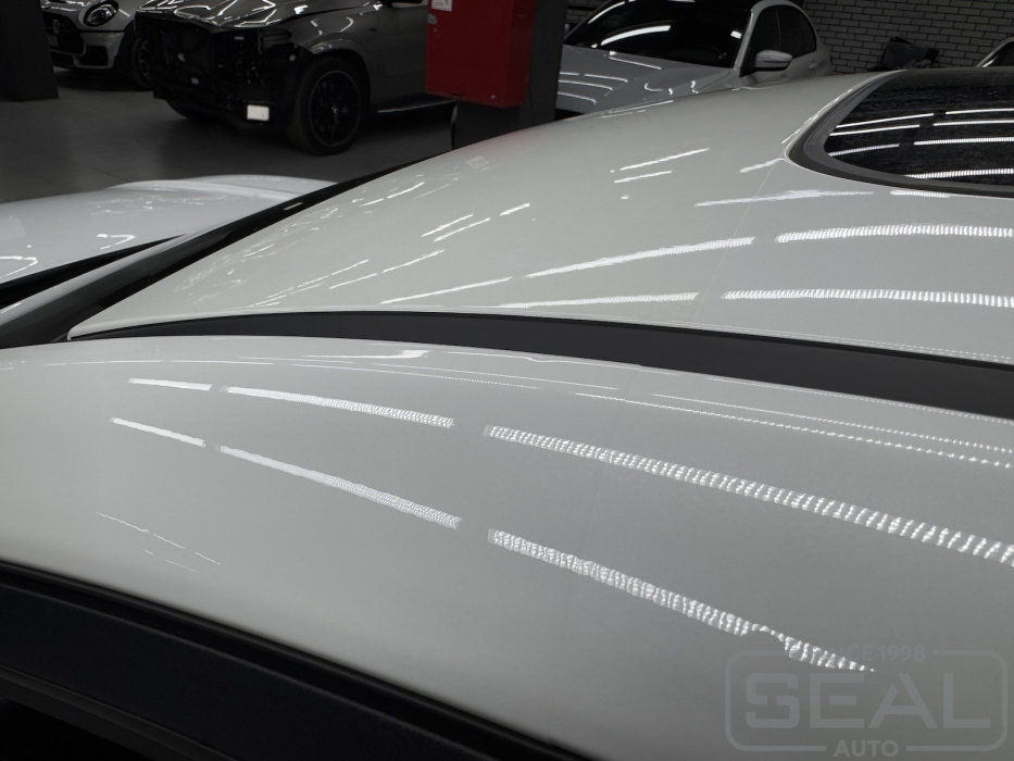 - Оклейка передней части крыши