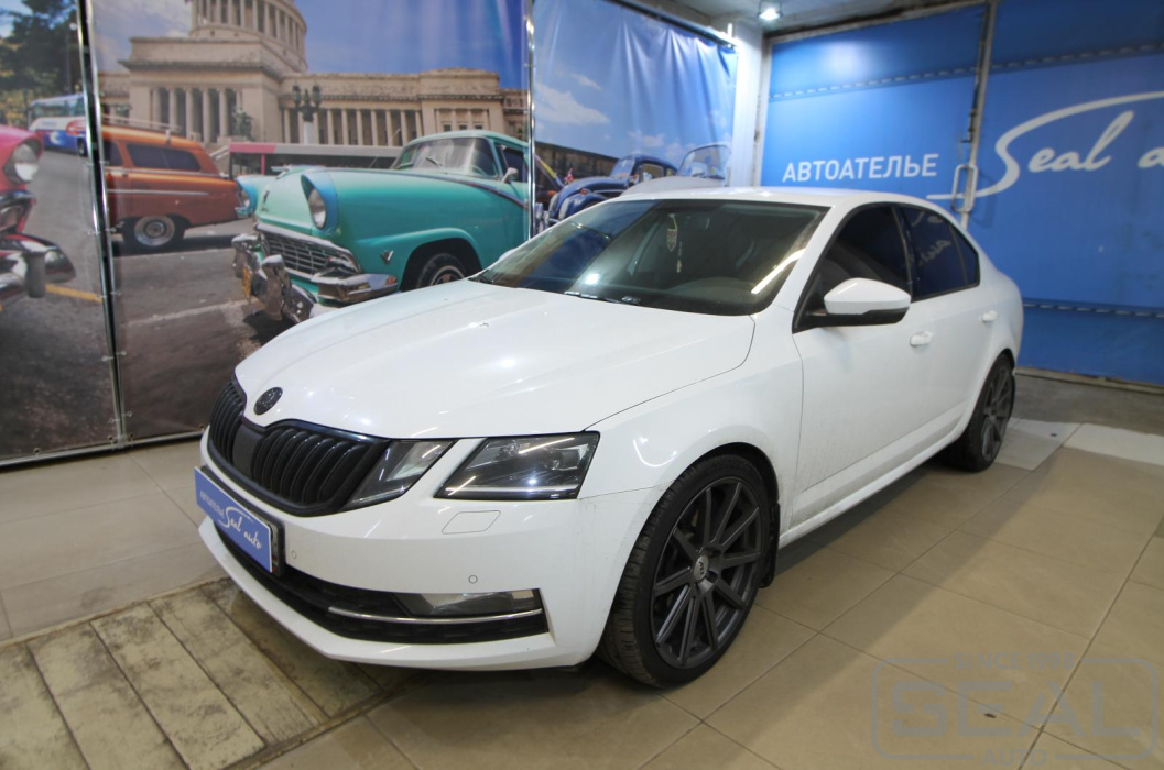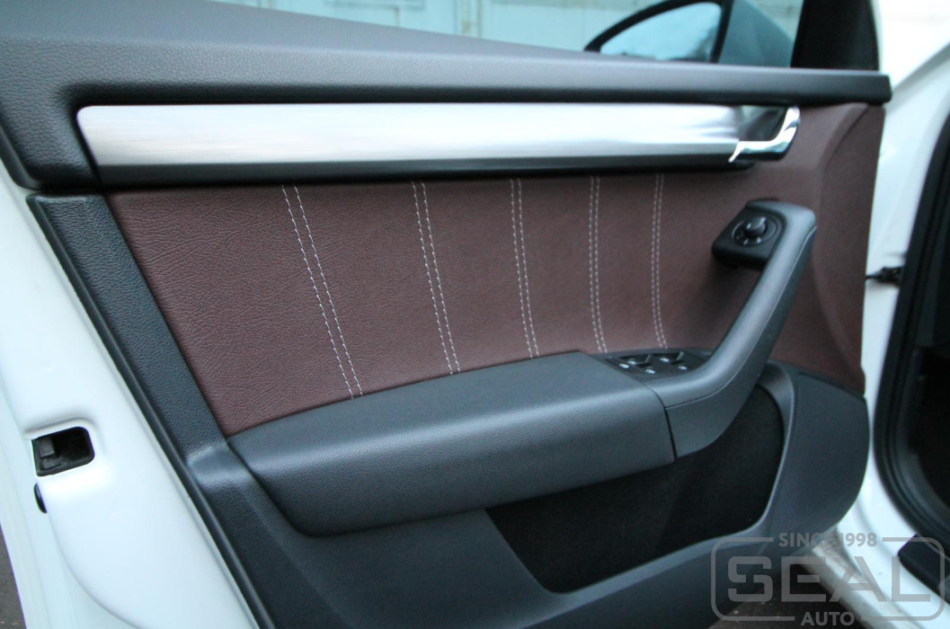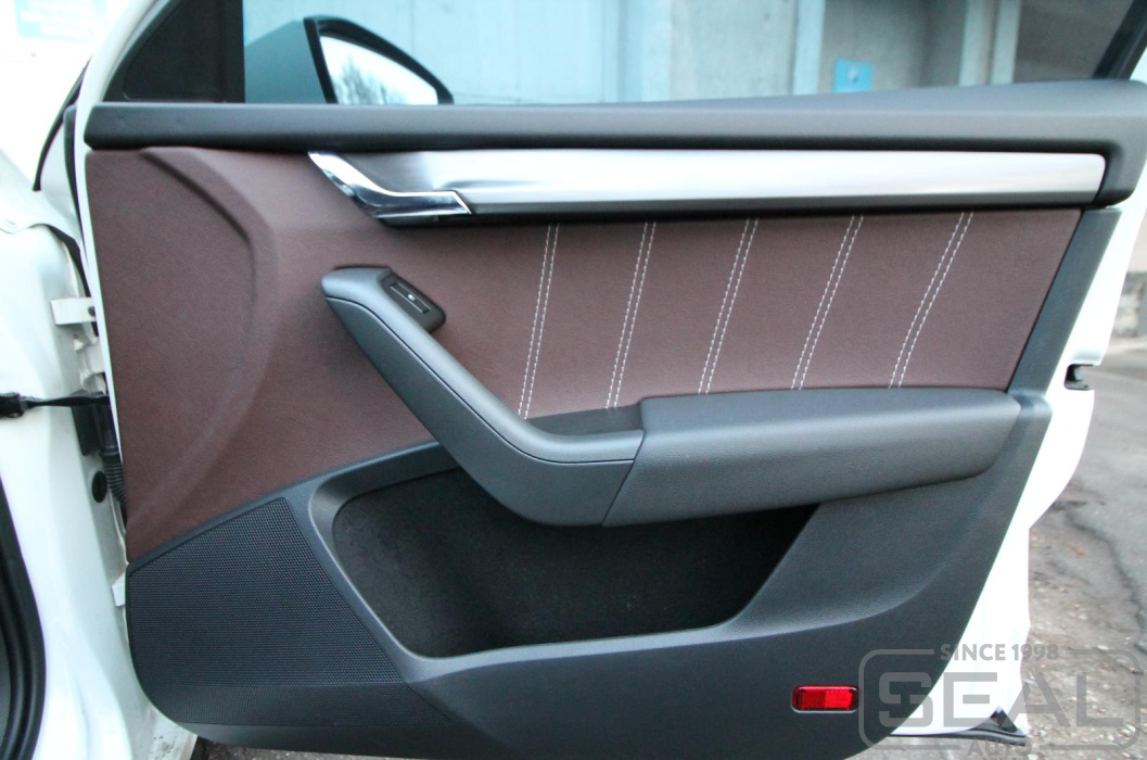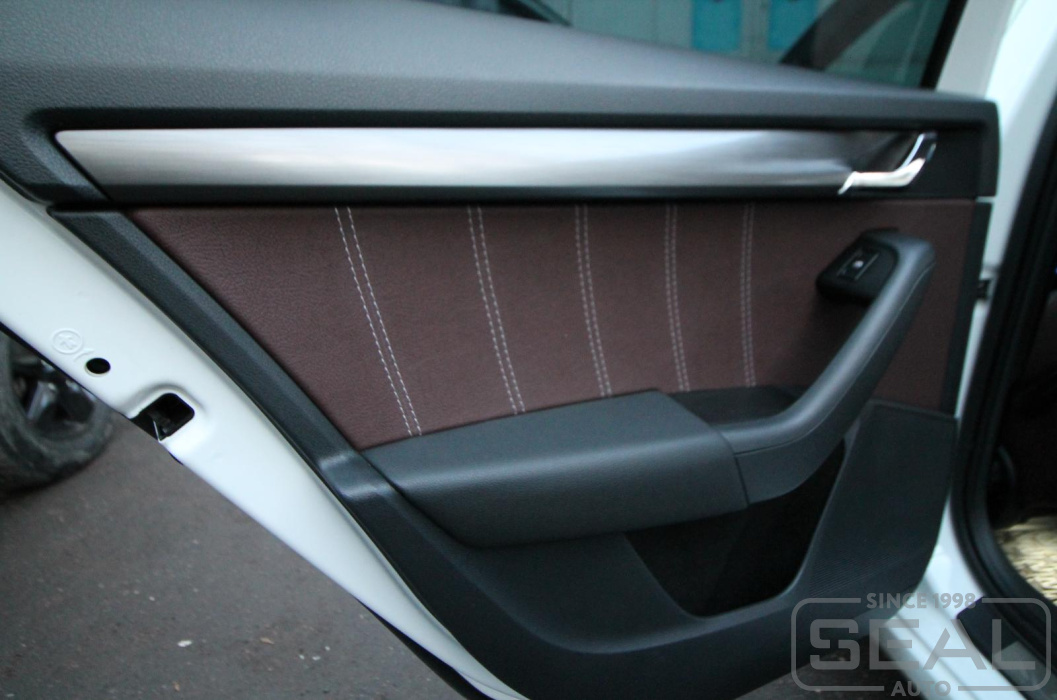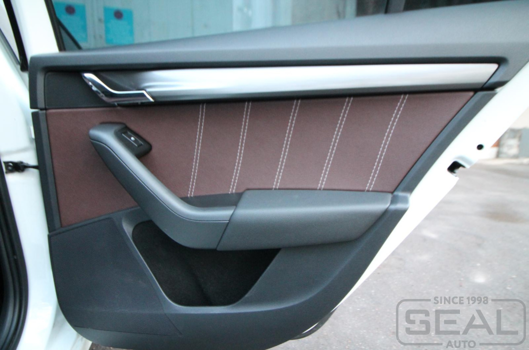 Перетяжка дверных карт и пошив чехла кпп на автомобиль Шкода Октавия А7