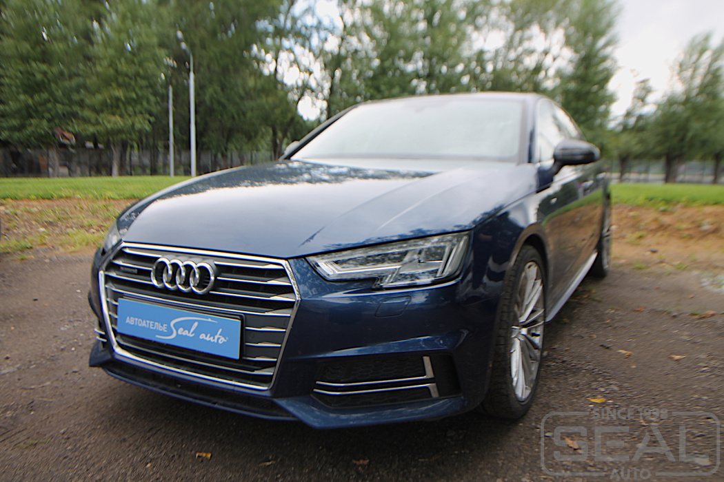 Услуга по перетяжке подлокотников дверей и элементов центральной консоли на Ауди А4 (кузов В9).