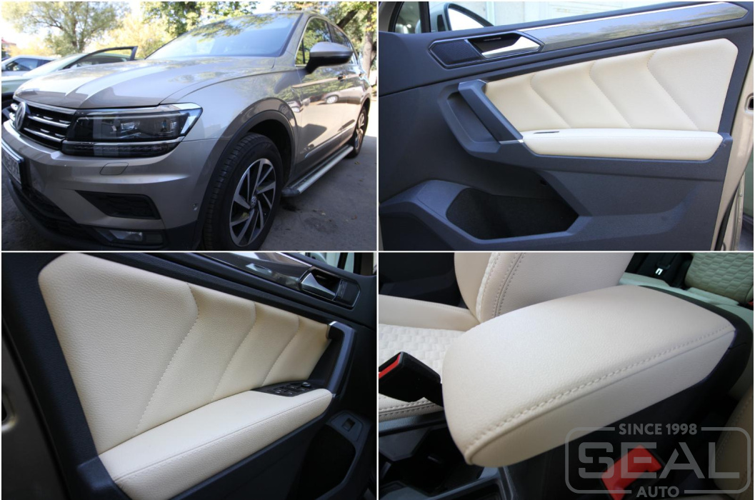Работа по перетяжке дверных карт и подлокотников для Фольксваген Тигуан (2-е поколение)