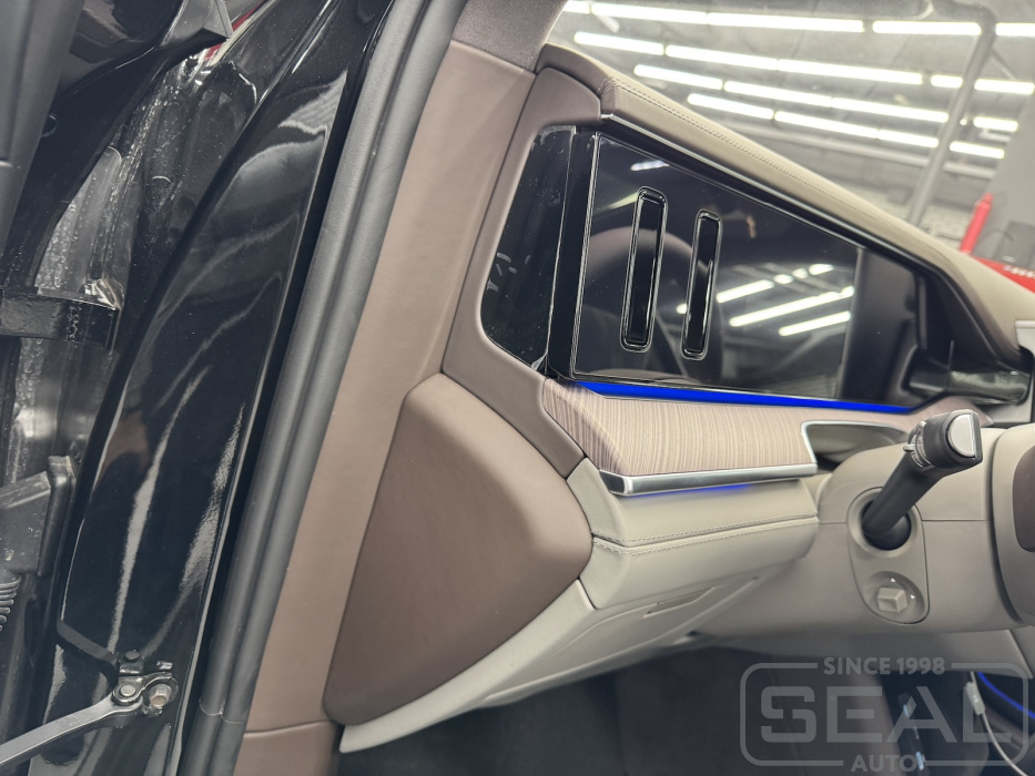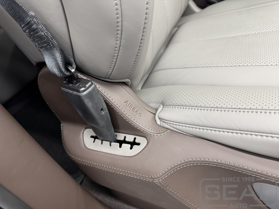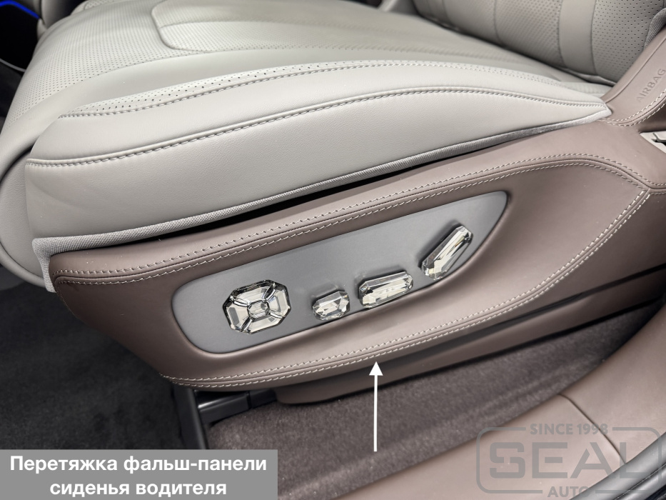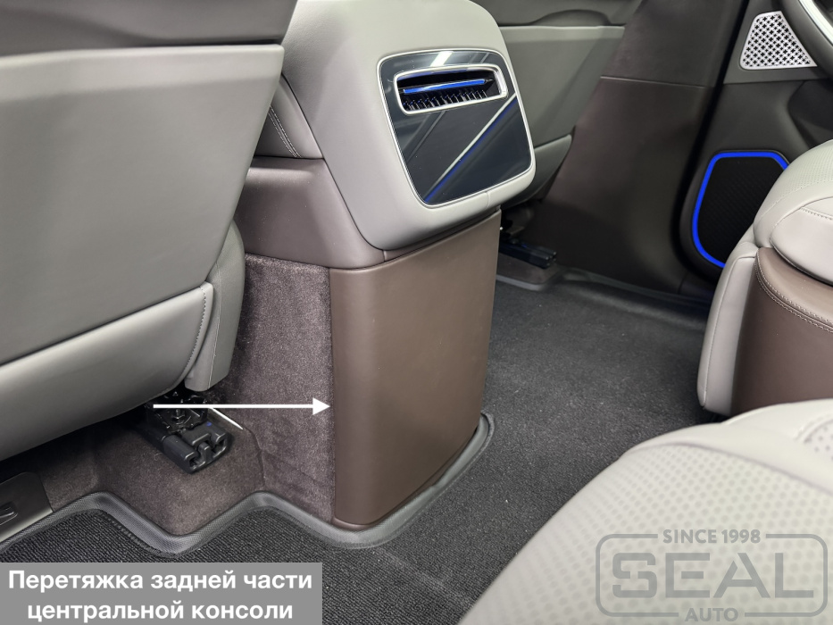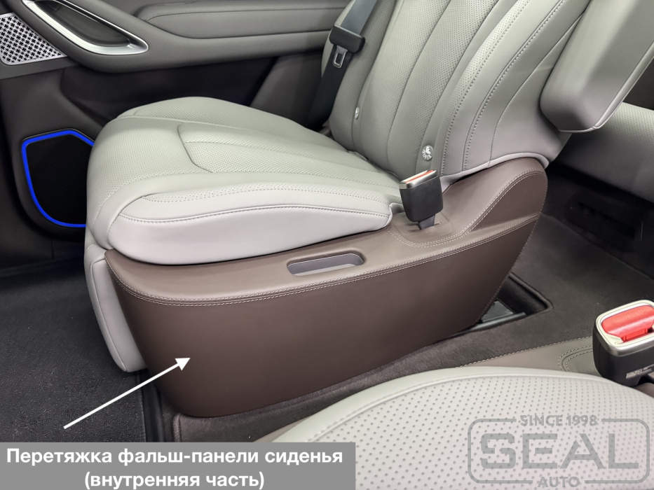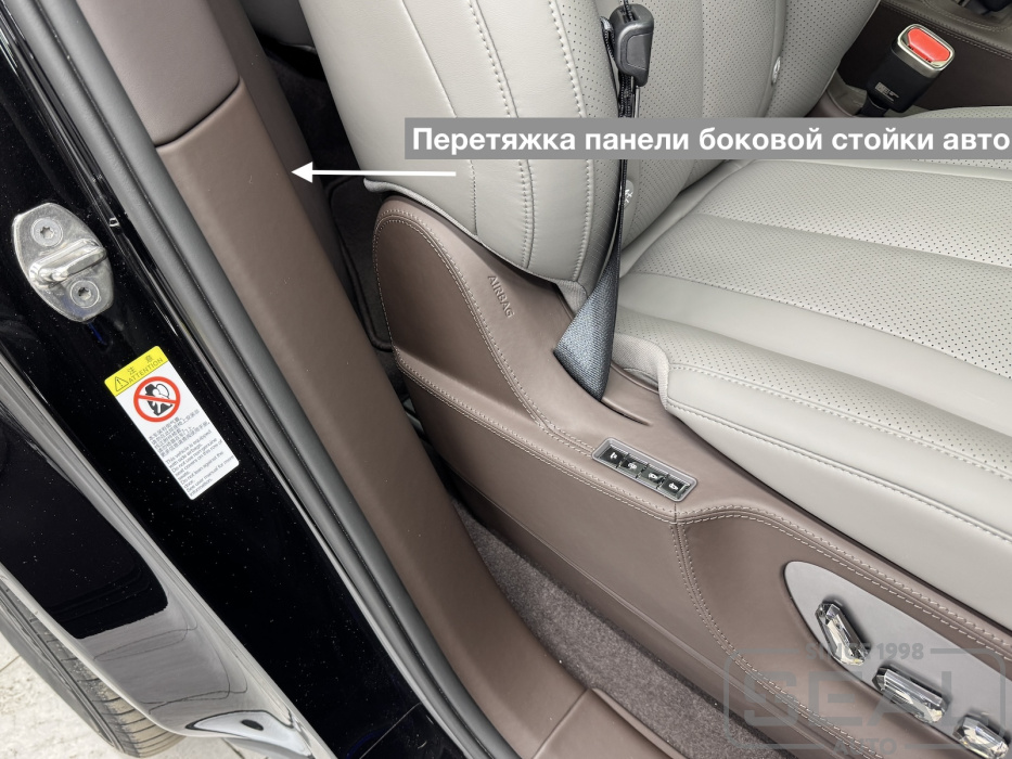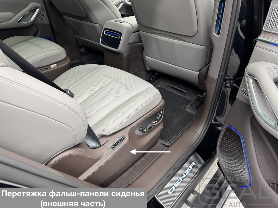Перетяжка боковых панелей сидений и других элементов салона автомобиля Denza N9 .