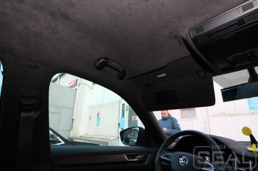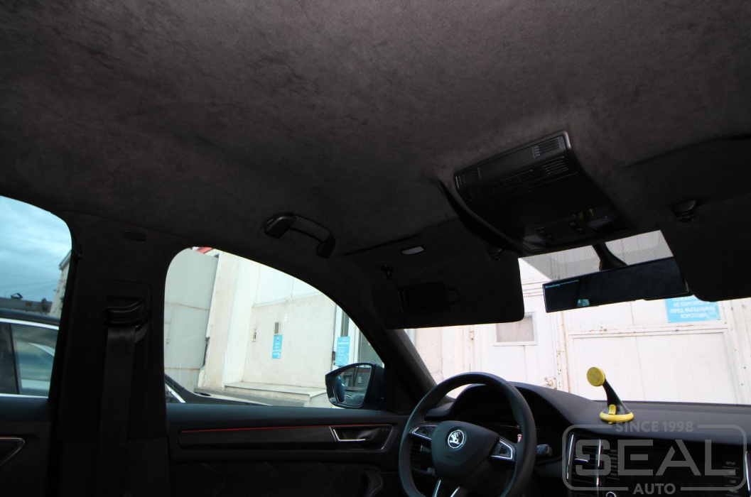 Проект по перетяжке потолка алькантарой на автомобиль Шкода Кодиак.