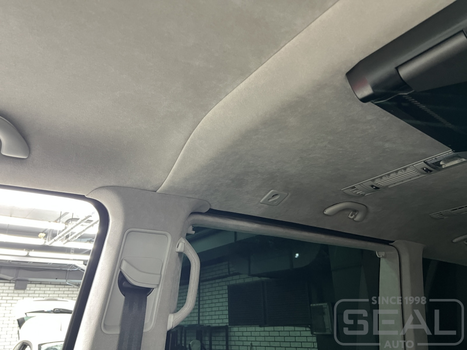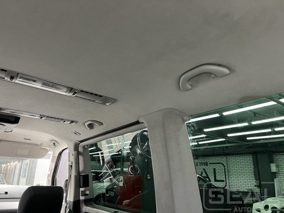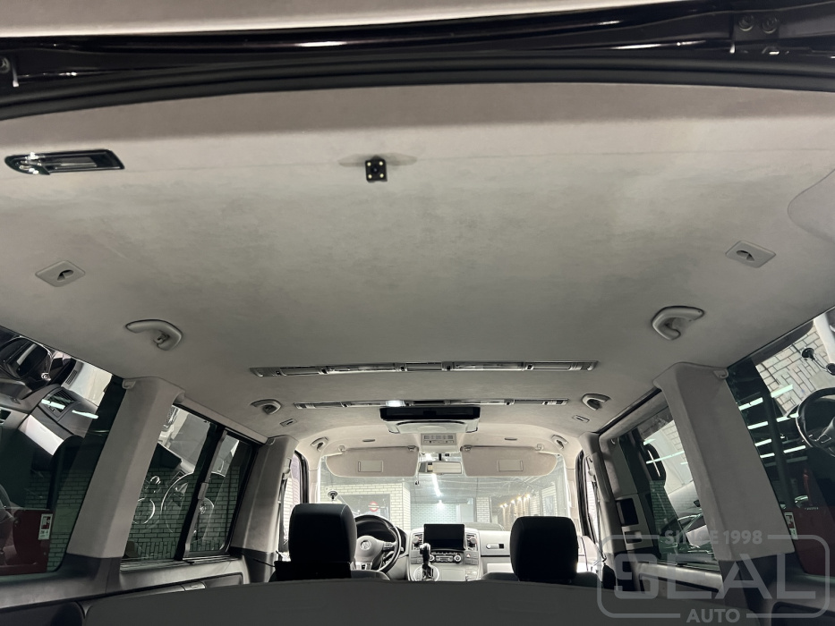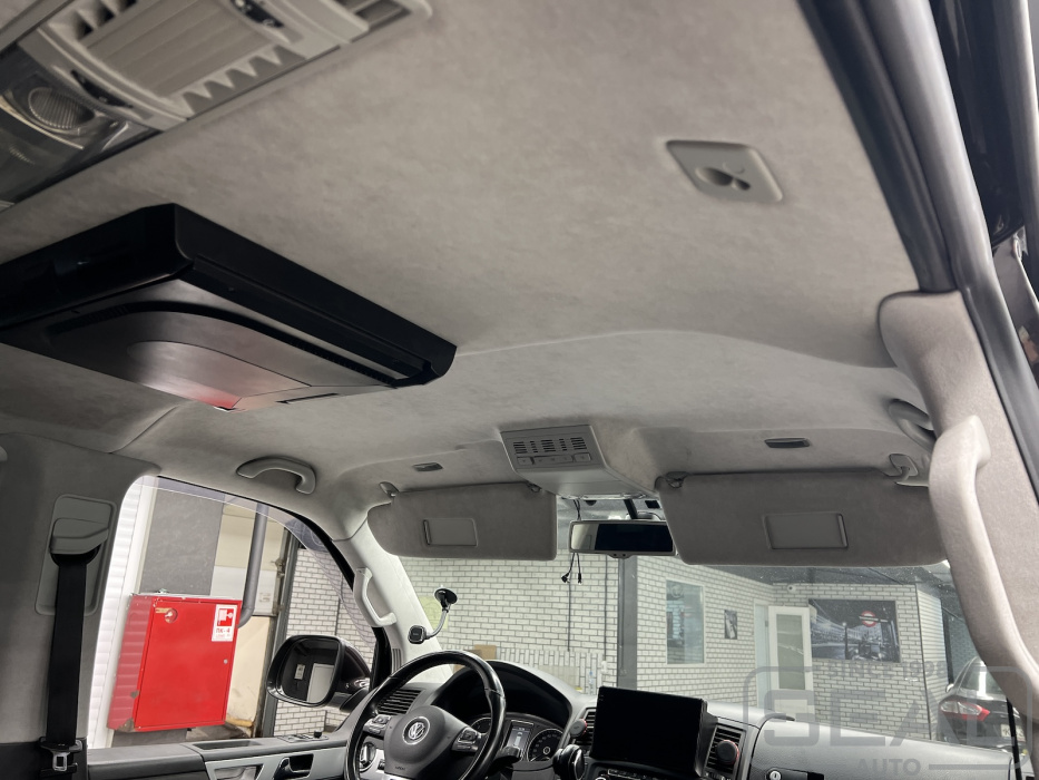 Работа по перетяжке потолка на Фольксваген Мультивен.