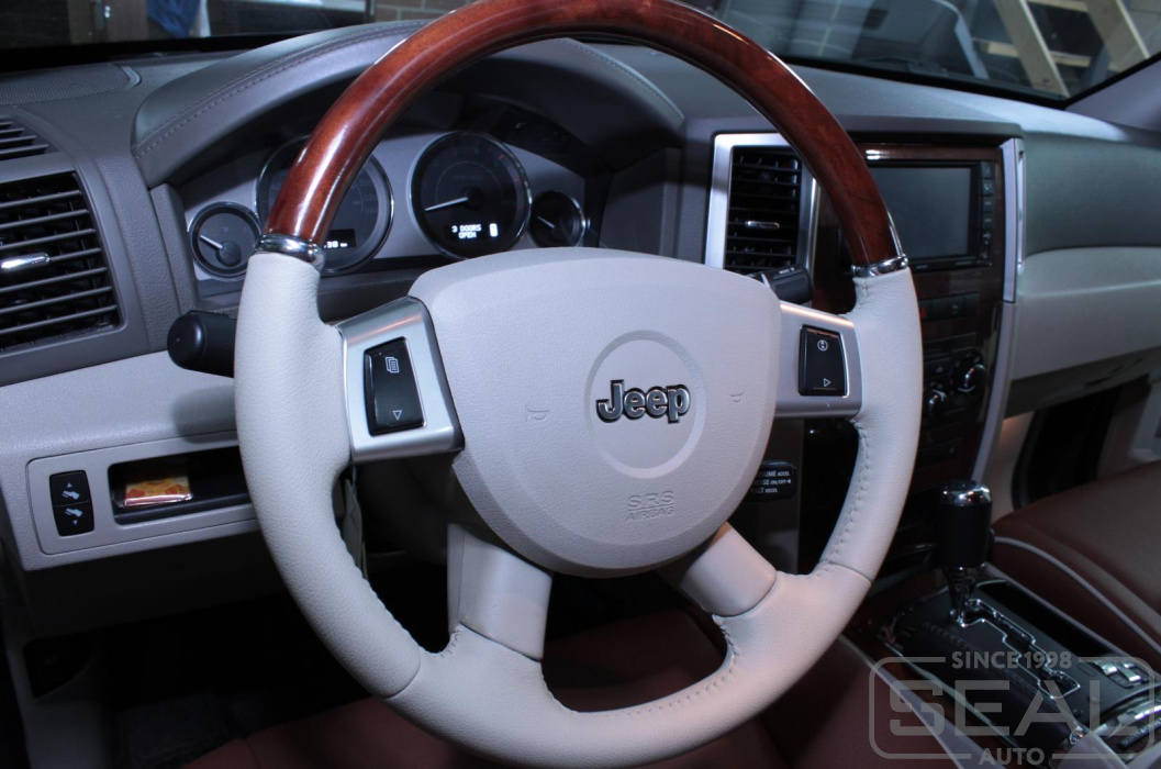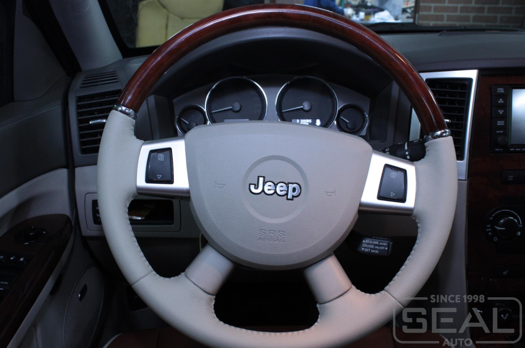 Перетяжка кожей руля на автомобиль Джип Чероки.