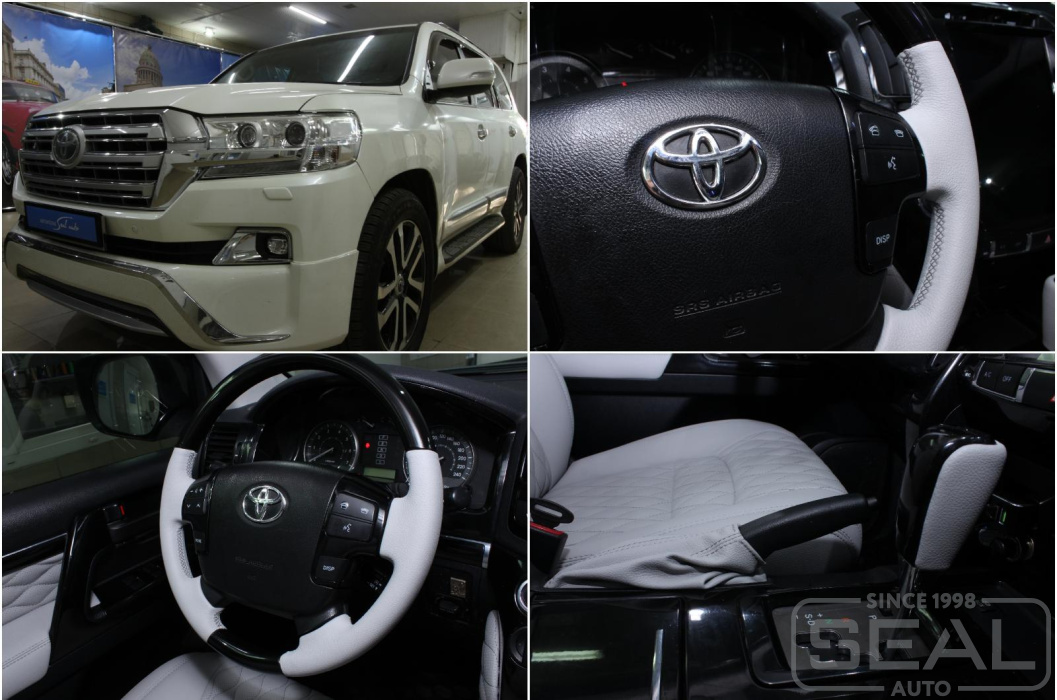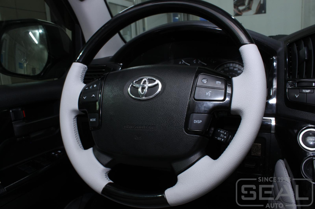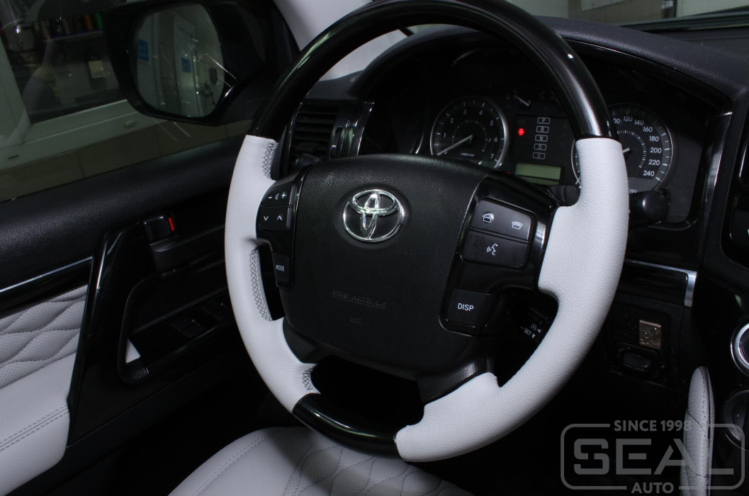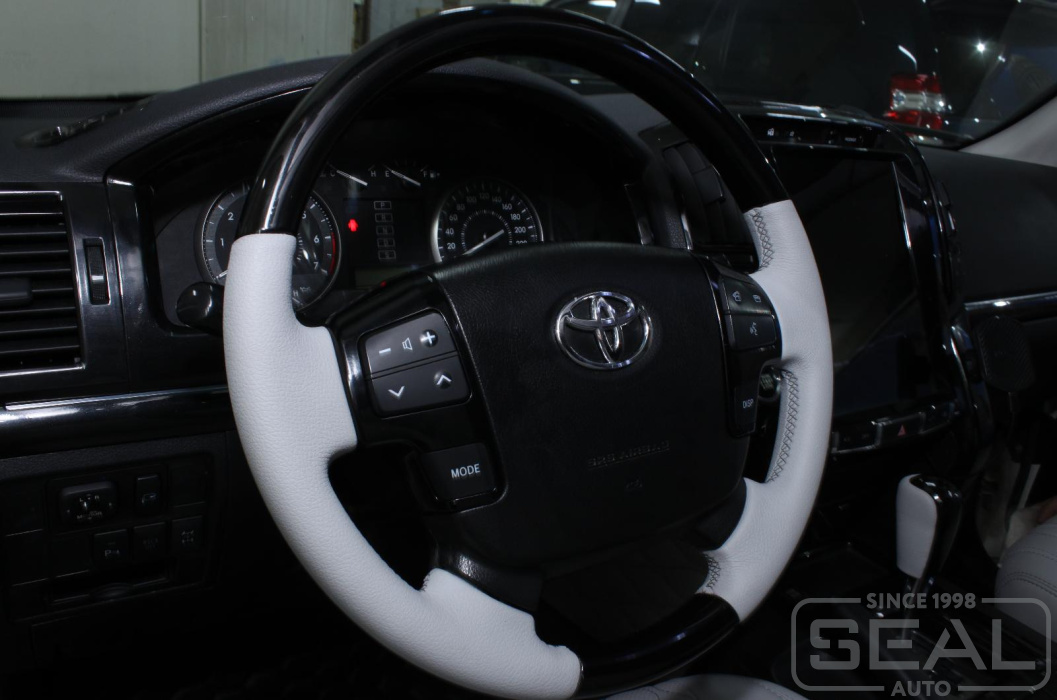 Услуга по перетяжке руля, ручки кпп и пошив чехла на ручник автомобиля Тойота Лэнд Крузер 200.