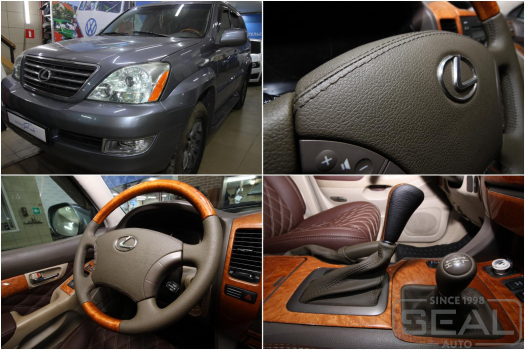 Работа по перетяжке руля, ручки кпп, ручного тормоза и кулис к ним для Лексус GX (1-е поколение).