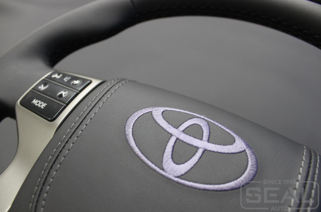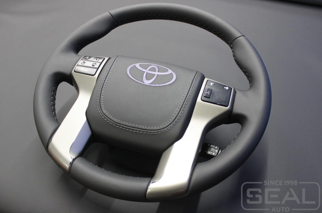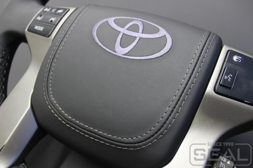 Toyota Land Cruiser Prado 150 Перетяжка руля и клаксона c вышивкой