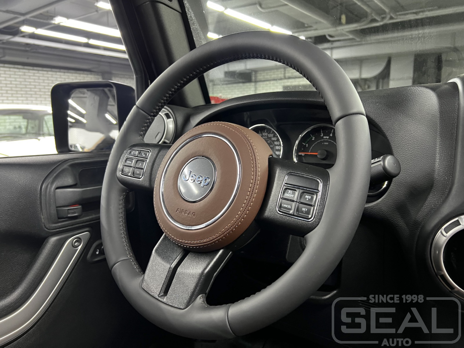 Работа по перетяжке руля и клаксона для автомобиля Джип Рэнглер.