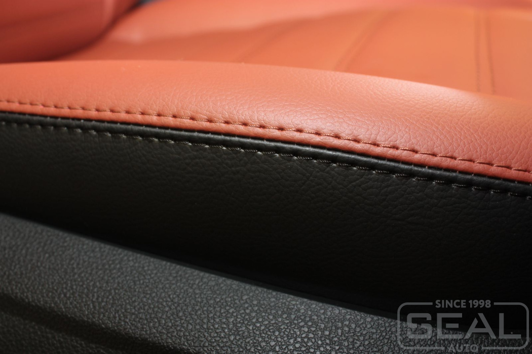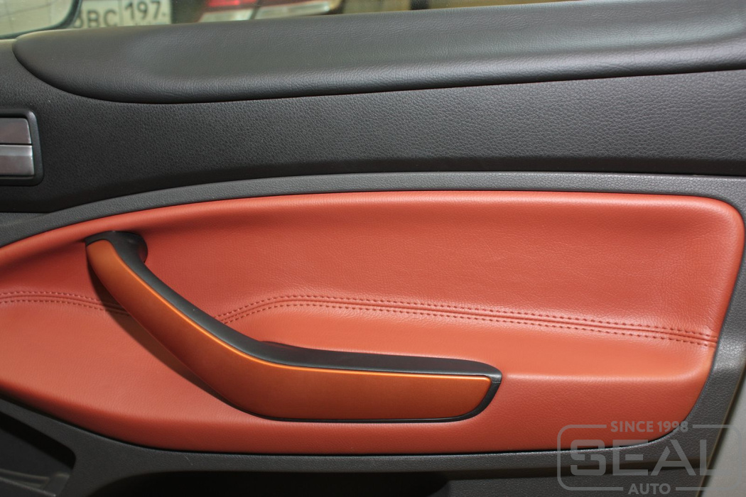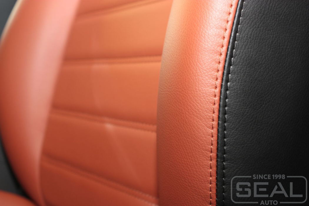 Перетяжка кожей сидений, подголовников, переднего подлокотника - 83.000 рублей.