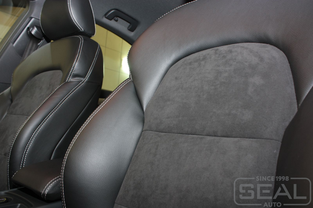 Перетяжка кожей автомобиля Ауди А4 (спорт сидения)