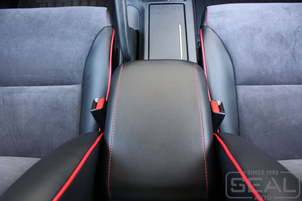 Перетяжка сидений, подголовников и переднего подлокотника - 84.000 рублей.