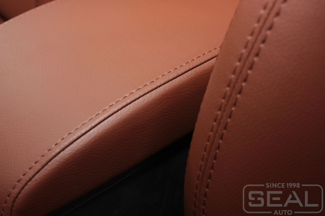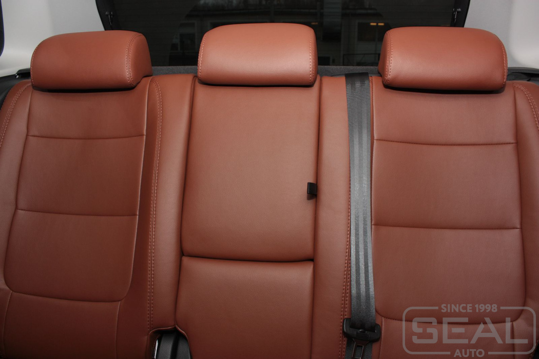 Перетяжка сидений, всех подголовников и переднего подлокотника - 82.000 рублей.