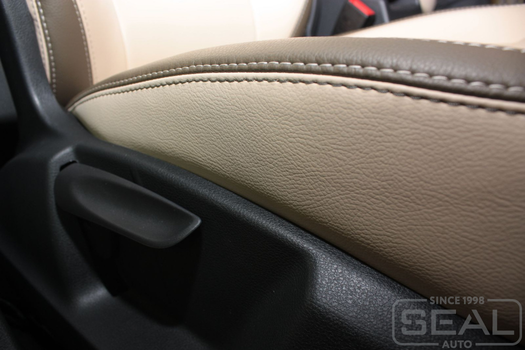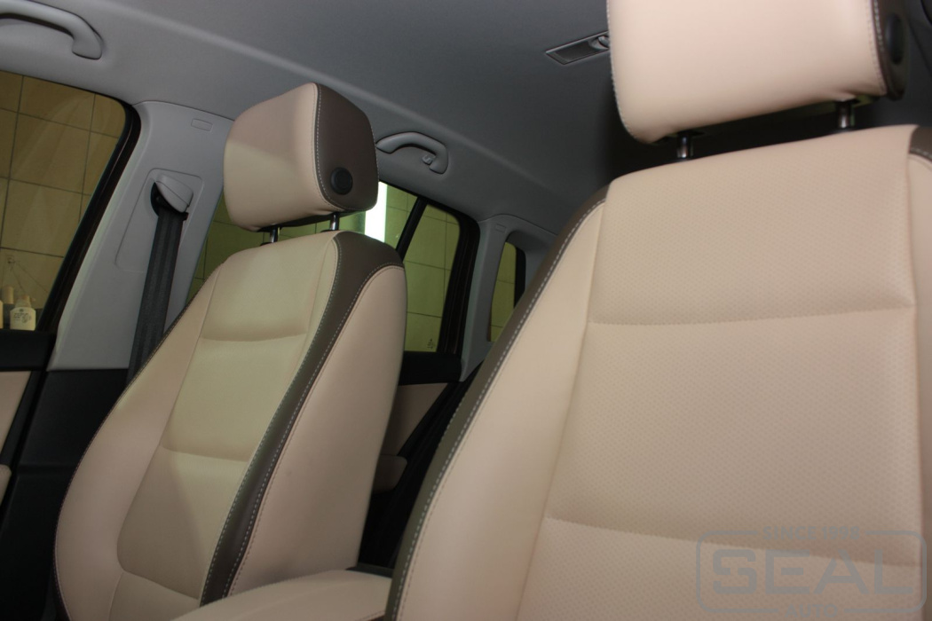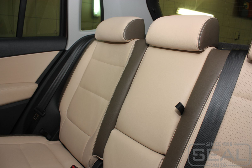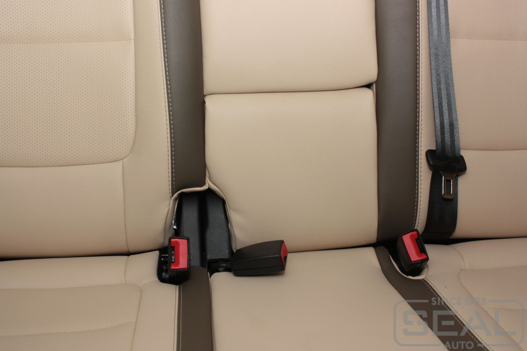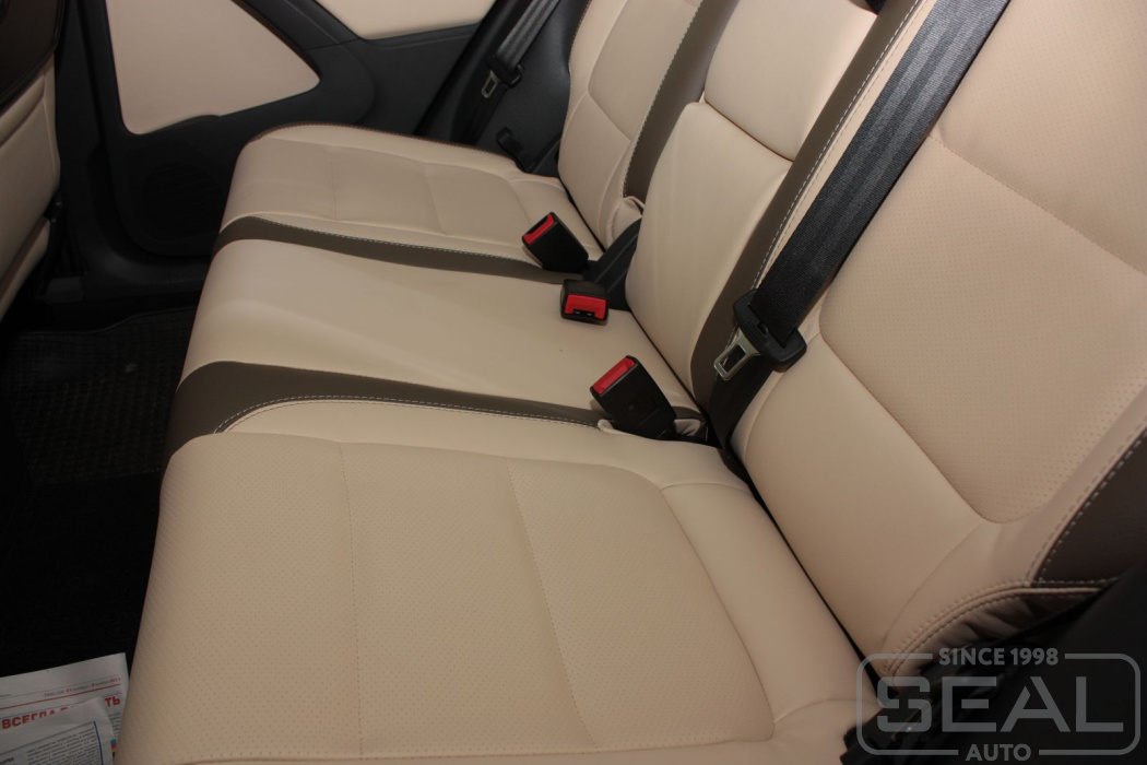 Перетяжка кожей сидений, всех подголовников и переднего подлокотника - 82.000 рублей.