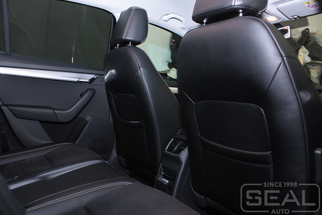 Видео по перетяжке салона Шкода Октавия III