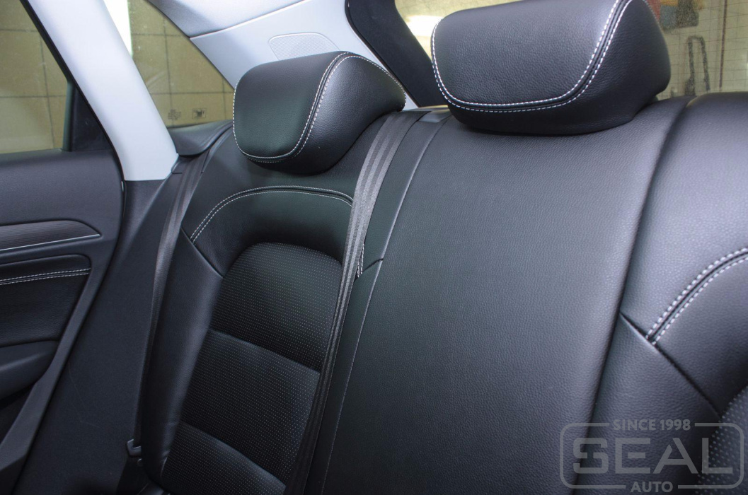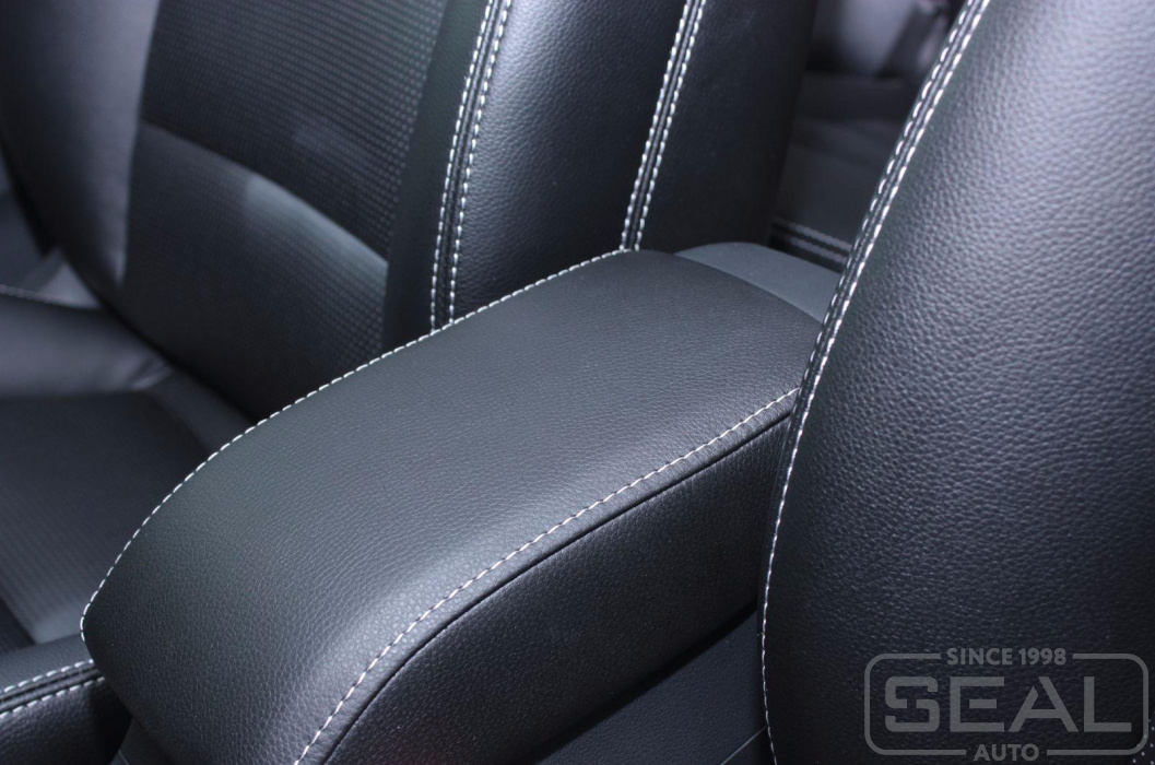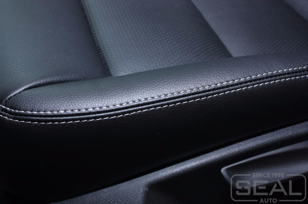 Перетяжка сидений автомобиля, обшивка подголовников и подлокотника - 82.000 рублей.