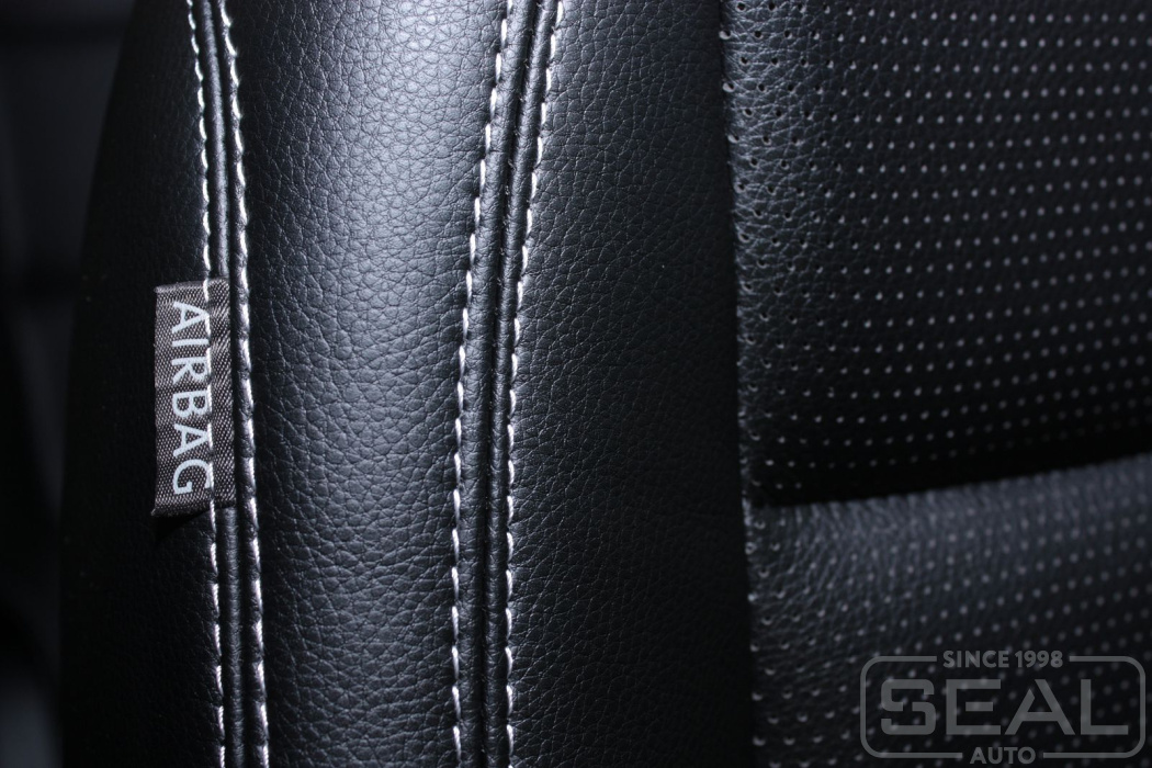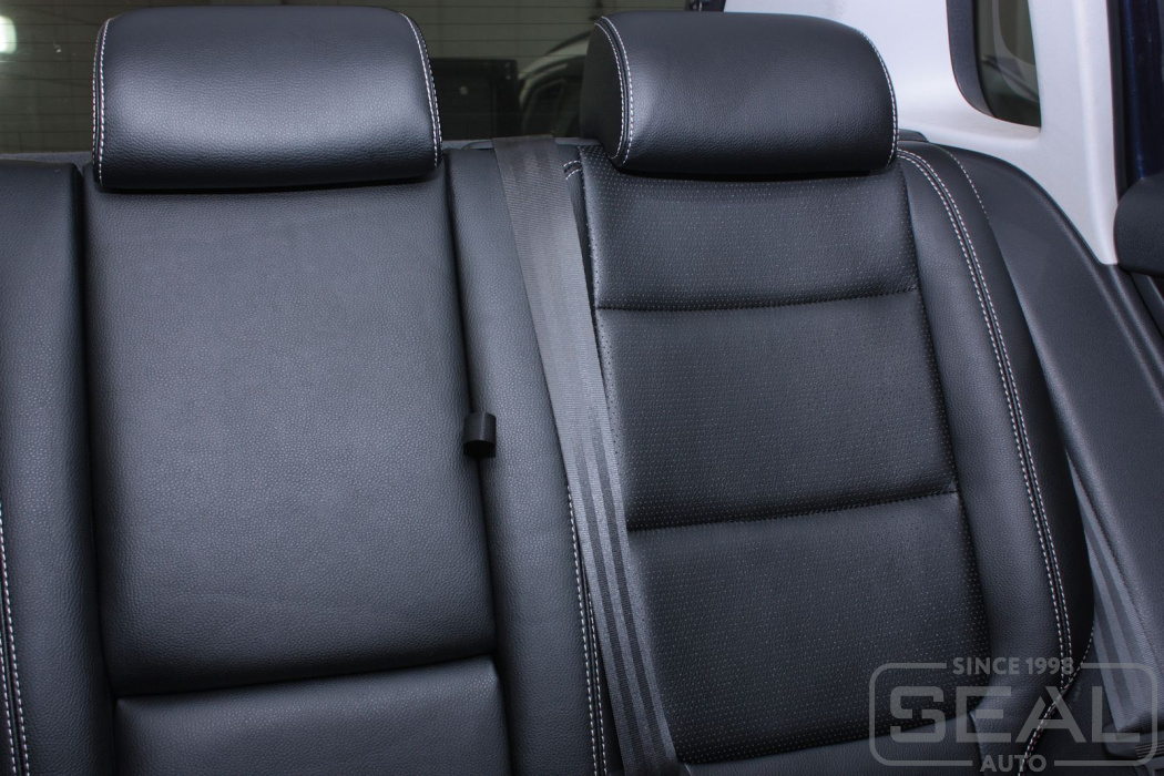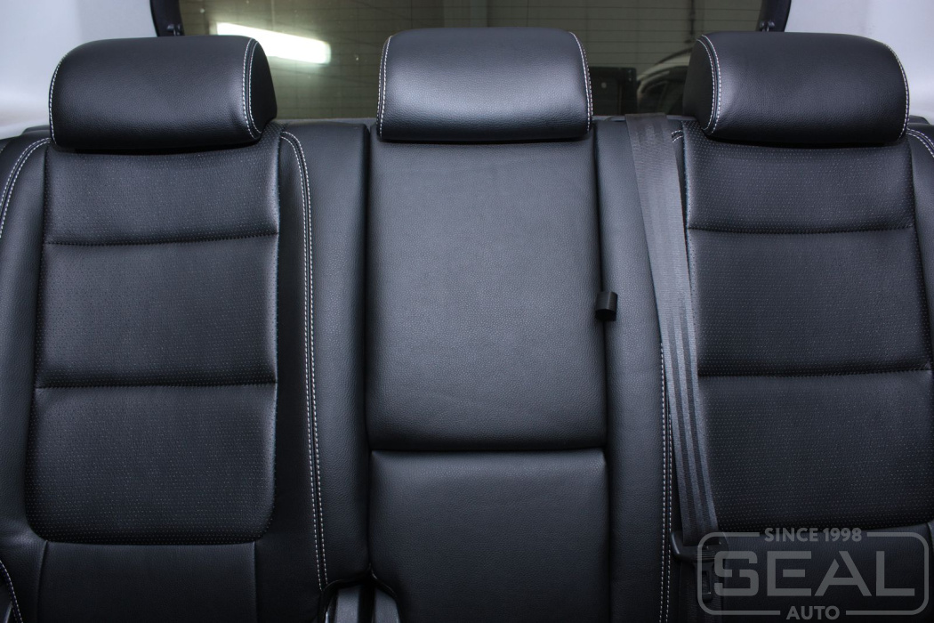 Перетяжка кожей сидений, всех подголовников и переднего подлокотника - 82.000 рублей.