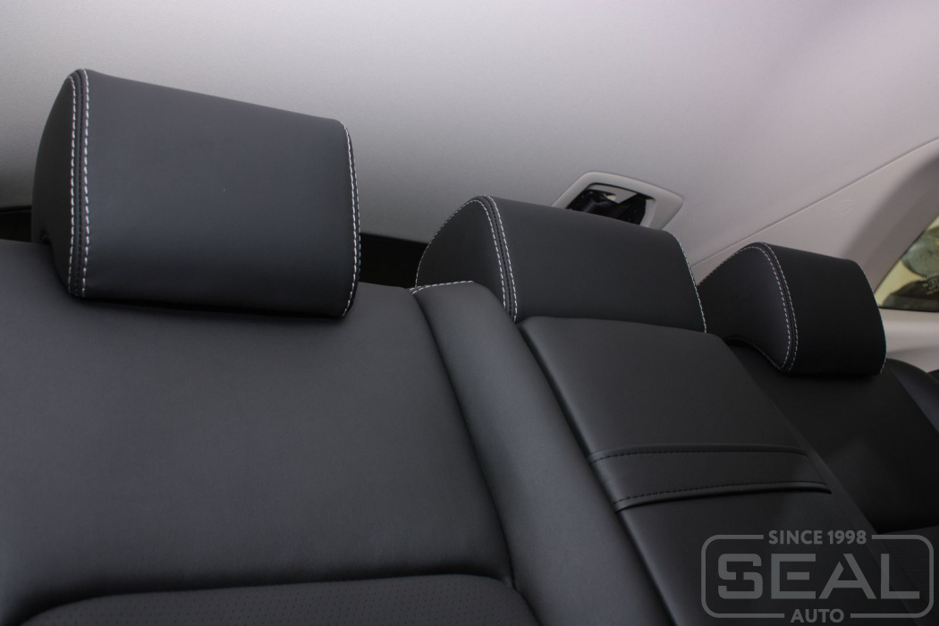 Перетяжка сидений, всех подголовников и заднего подлокотника - 90.000 рублей.