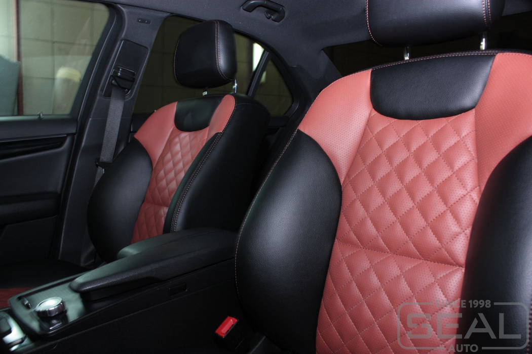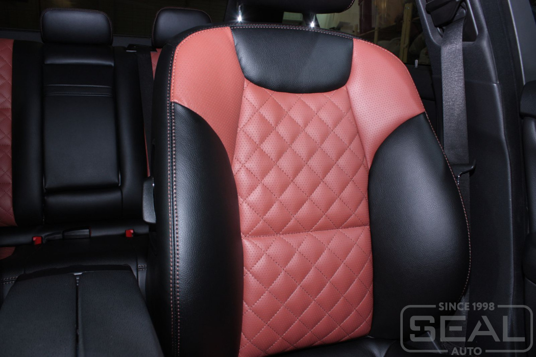 Перешив кожей сидений, обивка подголовников - 84.000 рублей.
